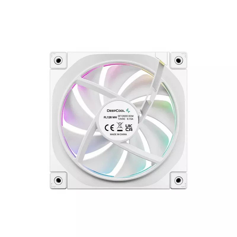 120mm Case Fan - DEEPCOOL ”FL12R WH”, High-Performance REVERSE 120mm ARGB PWM fan, 120x120x25 mm, 500~2150 RPM±10%, 55CFM, <32dB(A), 4-pin PWM, Fluid Dynamic Bearing, Luminous HALO, 3-Phase, 4-Pole, 6-Slot motor, 8-pin connectors, integrated with PWM