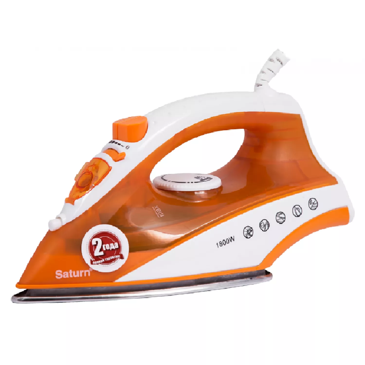 Fier de calcat saturn st-cc7142, 1800 w, 90 g/min, 160 ml, talpa inox, oranj, alb