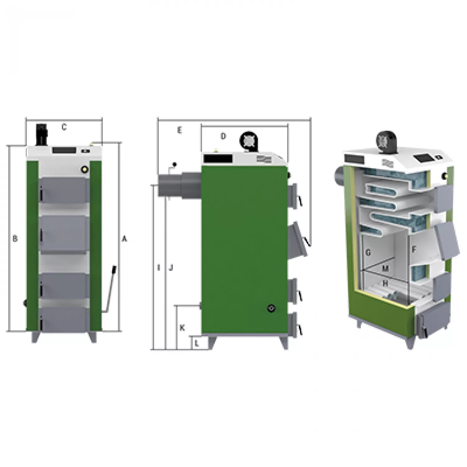 Cazan pe combustibil solid drewmet mj-1nm 20 kw 1.7, 20 kw, 200 m2, control electronic, gri, verde, alb