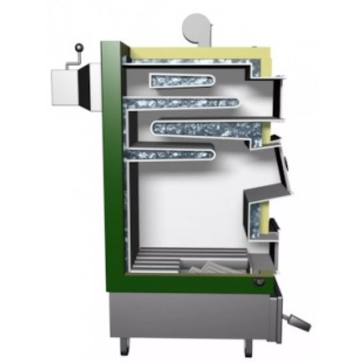 - Cazanul este echipat cu gratare mobile din fonta cu o manta de apa