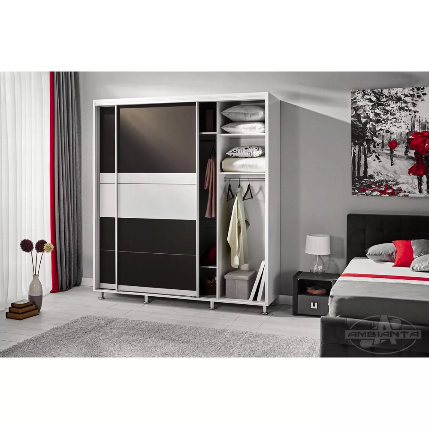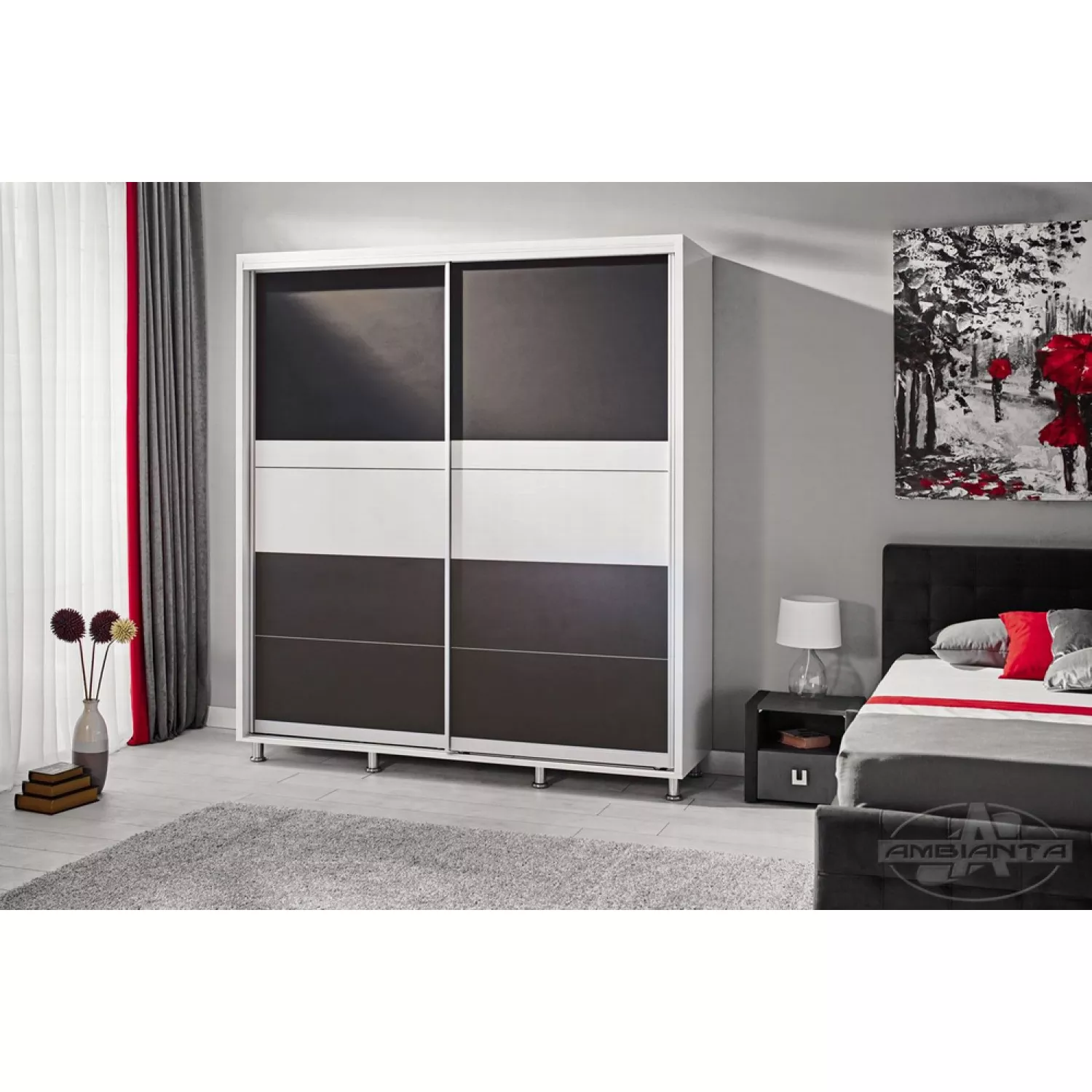Dulap cu usi glisante ambianta cristal 1.2 m, alb, grafit