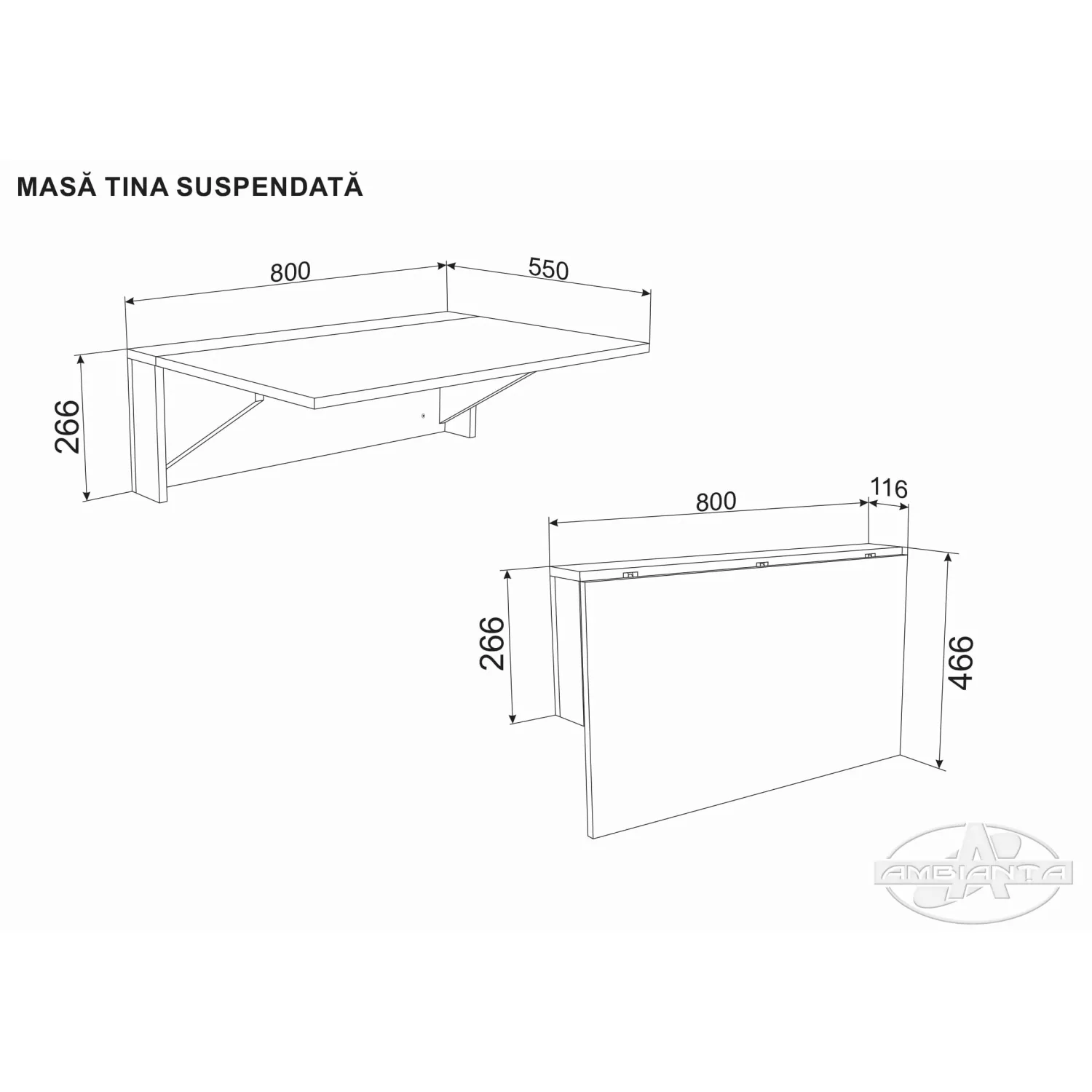 Caracteristici pentru Masa Ambianta TINA, PAL melaminat, Bardolino,, 80 x 55 x 26.6