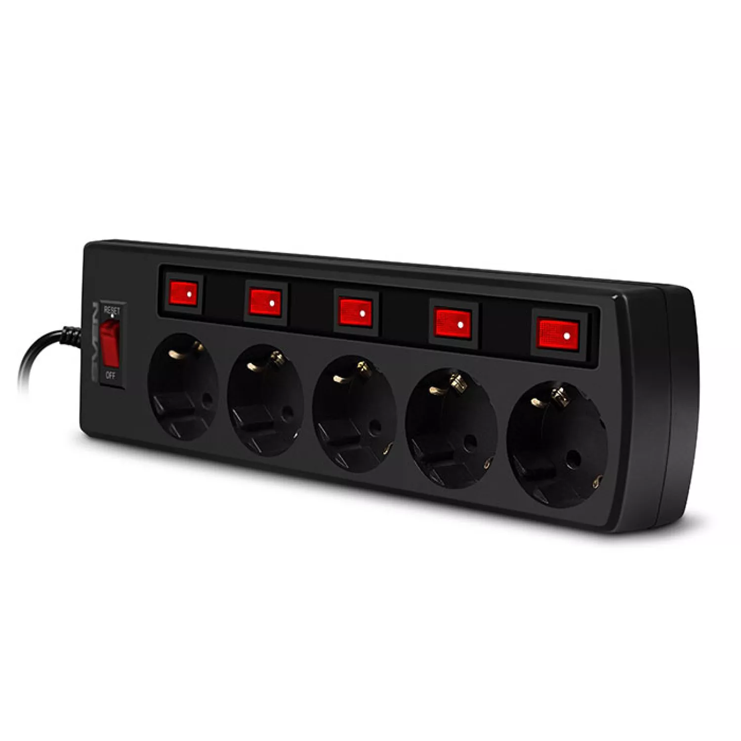 Prelungitor cu protectie sven sf-05pl, black, 5 sockets, 3.0m, individual switches, flame-retardant