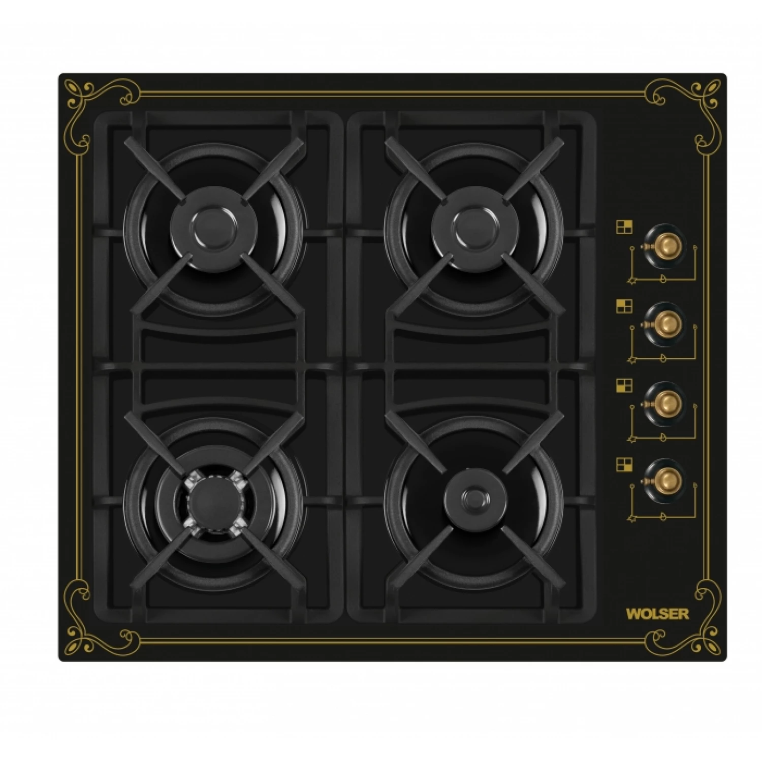 Plita incorporabila cu gaz wolser wl- f 6401 gt ic black r, 4 arzatoare, arzator wok, sticla calita, aprindere electrica, negru