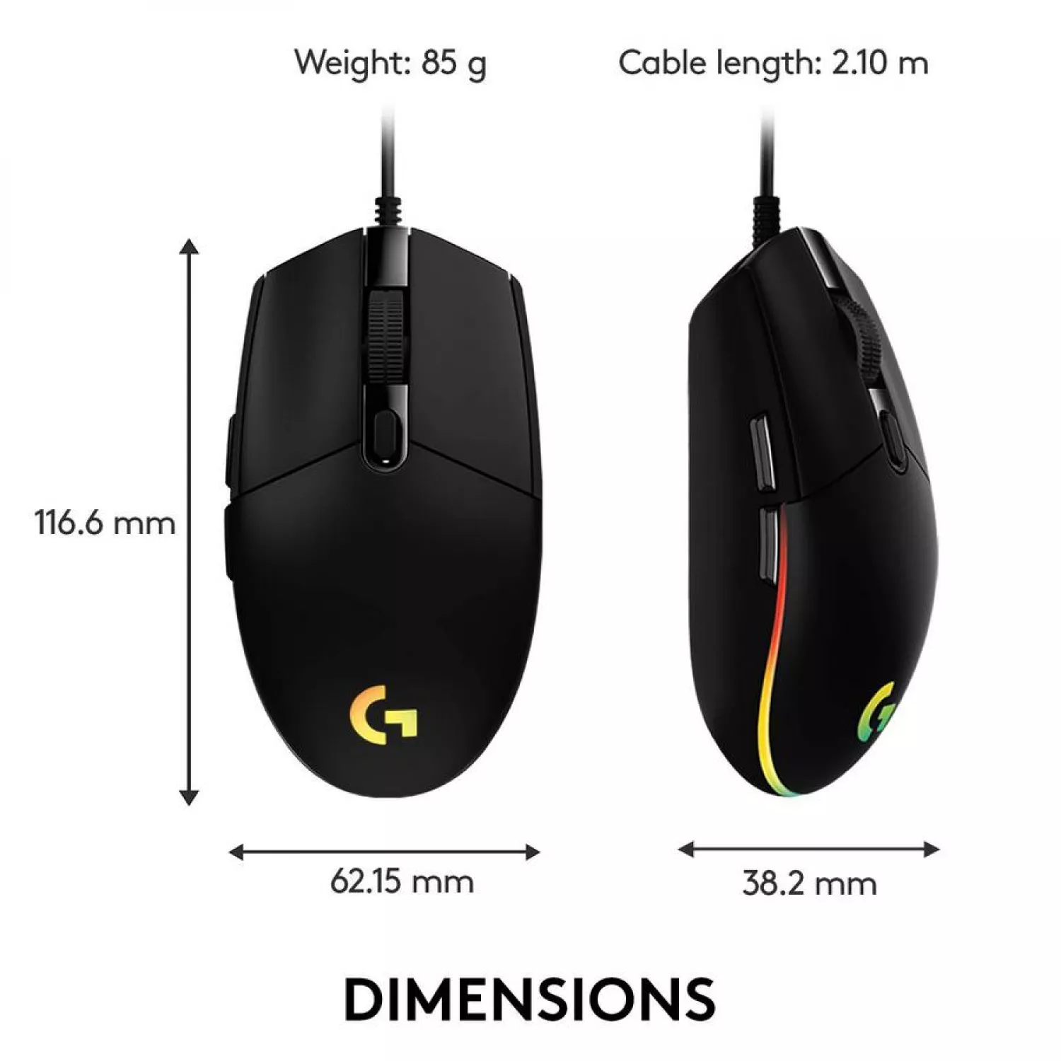 Caracteristici pentru Gaming Mouse LOGITECH G102 LIGHTSYNC, RGB iluminare, RGB iluminare, Black, 6 Programmable buttons, 200- 8000 dpi, Onboard memory
