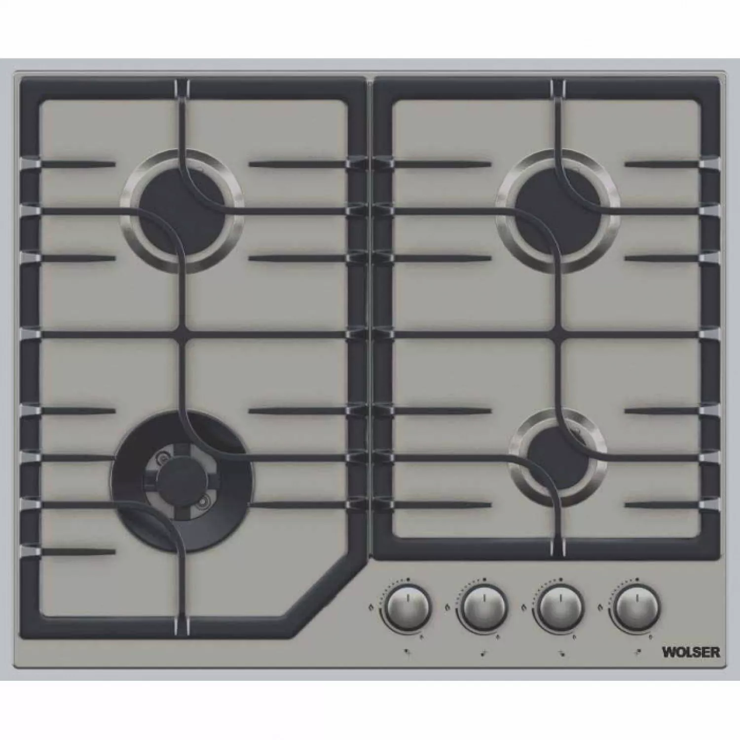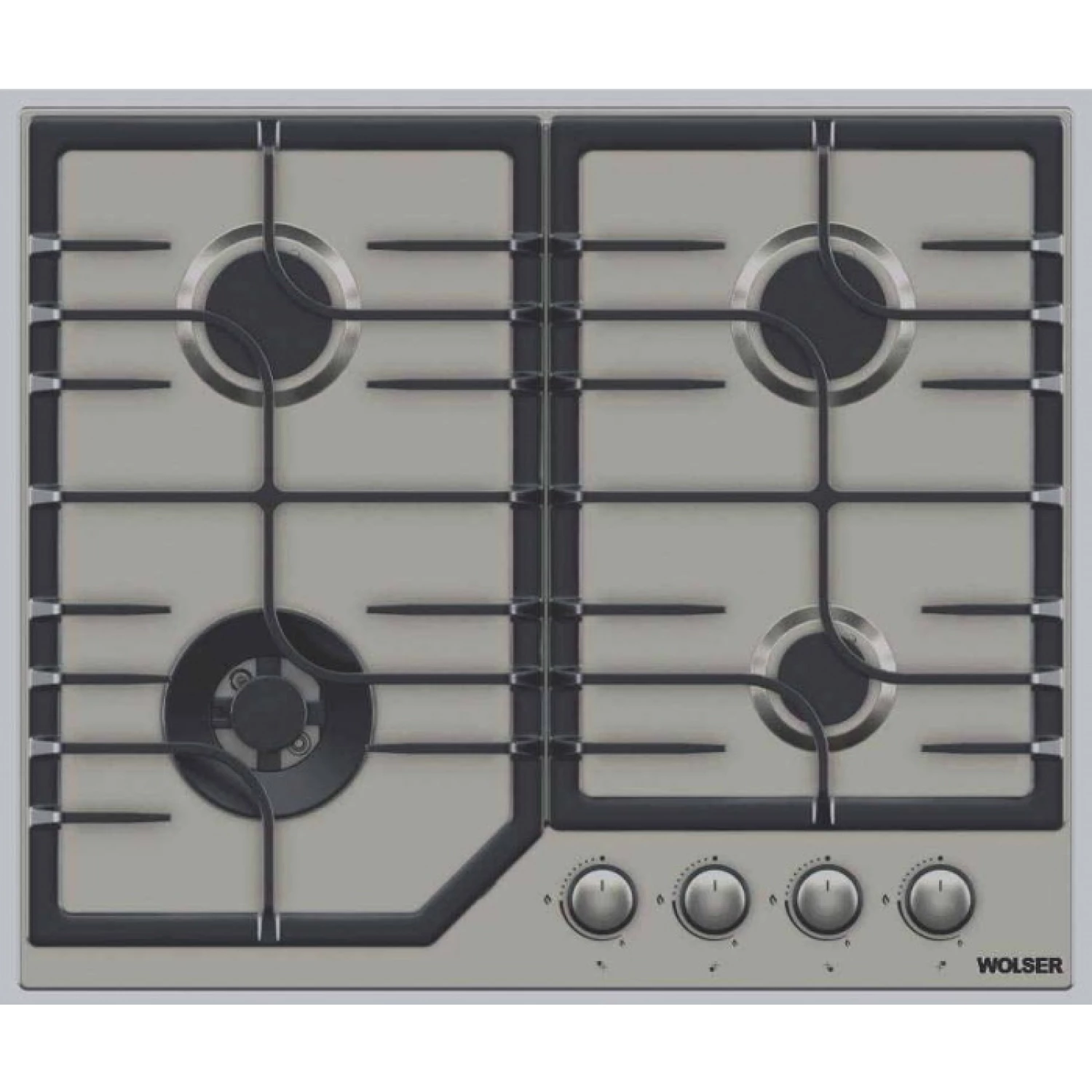 Plita incorporabila cu gaz wolser wl- f 6402 gt ic inox, 4 arzatoare, arzator wok, aprindere electrica, inox