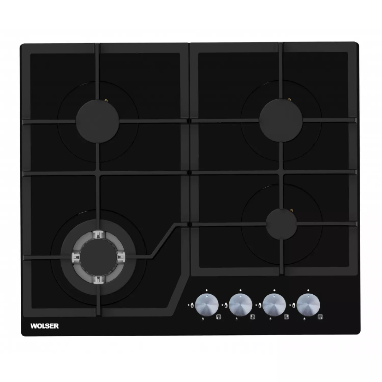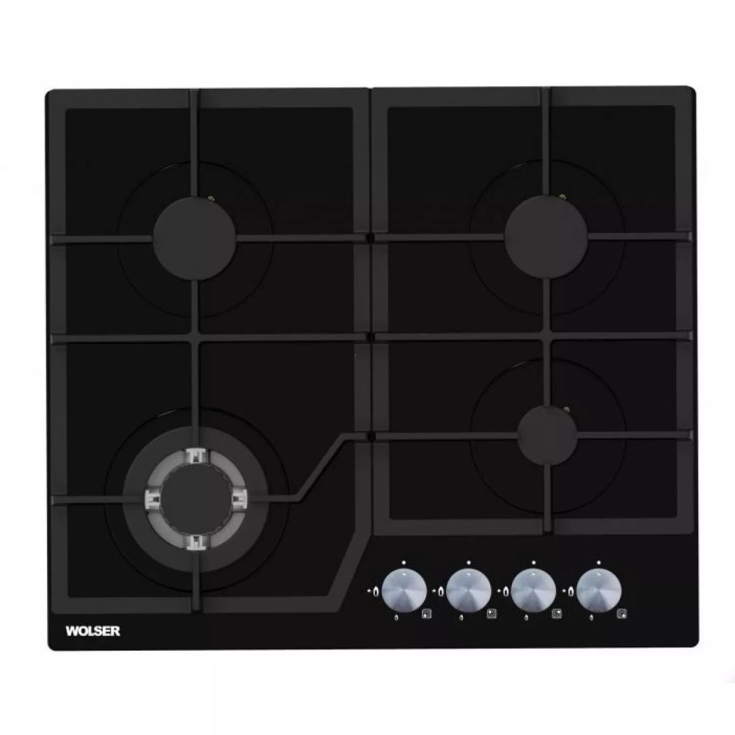 Caracteristici pentru Plita incorporabila cu gaz WOLSER WL-6400 GBN Q BLACK, 4 arzatoare, Arzator Wok, Sticla calita, Aprindere electrica, Negru