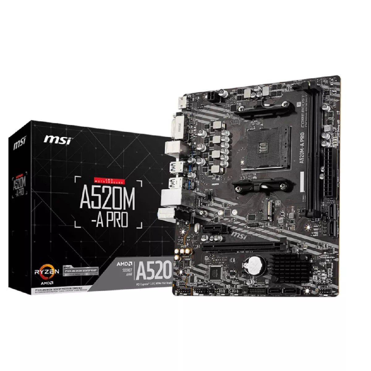 # 222849 Placa de baza MSI A520M-A PRO, AM4, A520 2xDDR4 DVI HDMI 1xPCIe16 1xM.2 4xSATA mATX