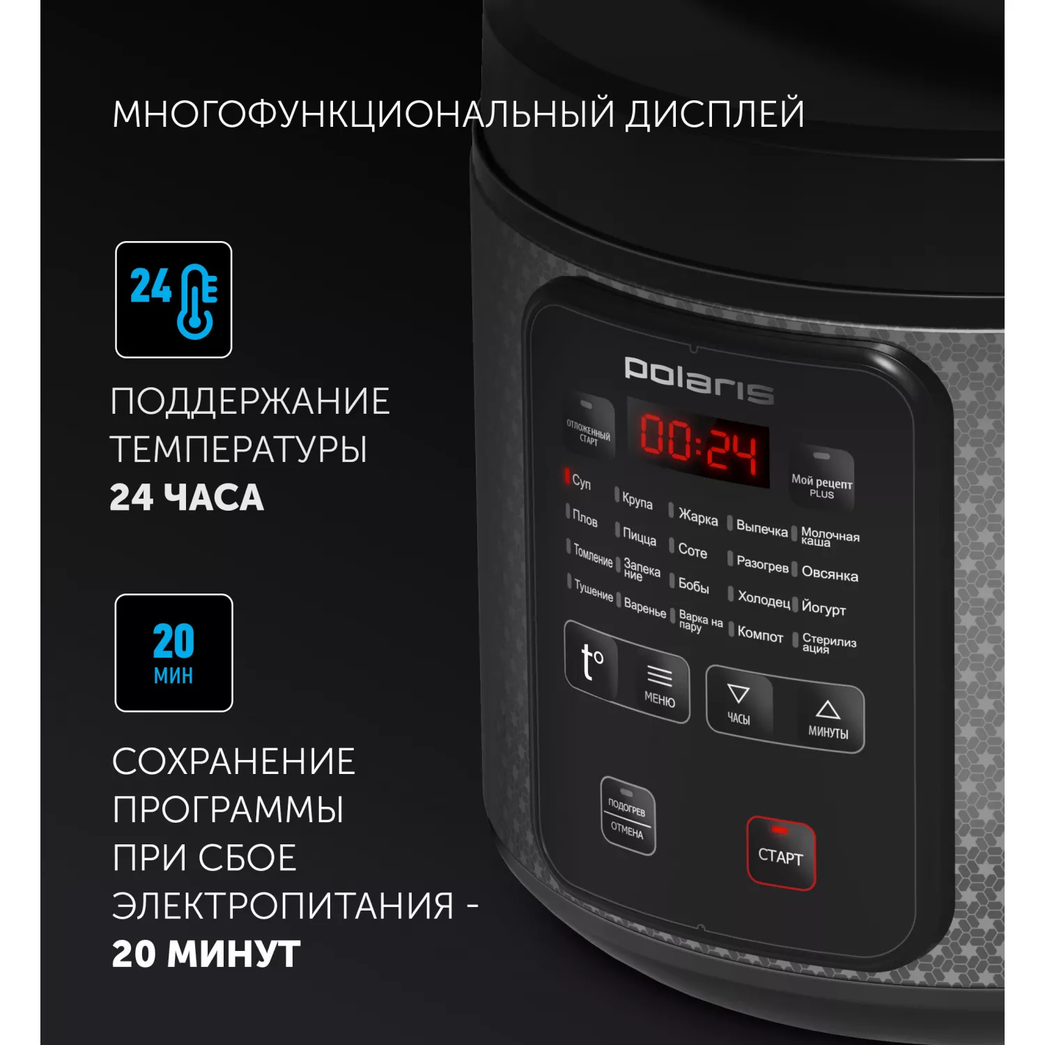 | Rețeta mea Plus, supă, cereale, prăjire, coacere, terci de lapte, pilaf, pizza, sote, încălzire, fulgi de ovăz, fierbere, prăjire, fasole, carne jeleu, iaurt, tocană, gem, abur, compot, sterilizare |