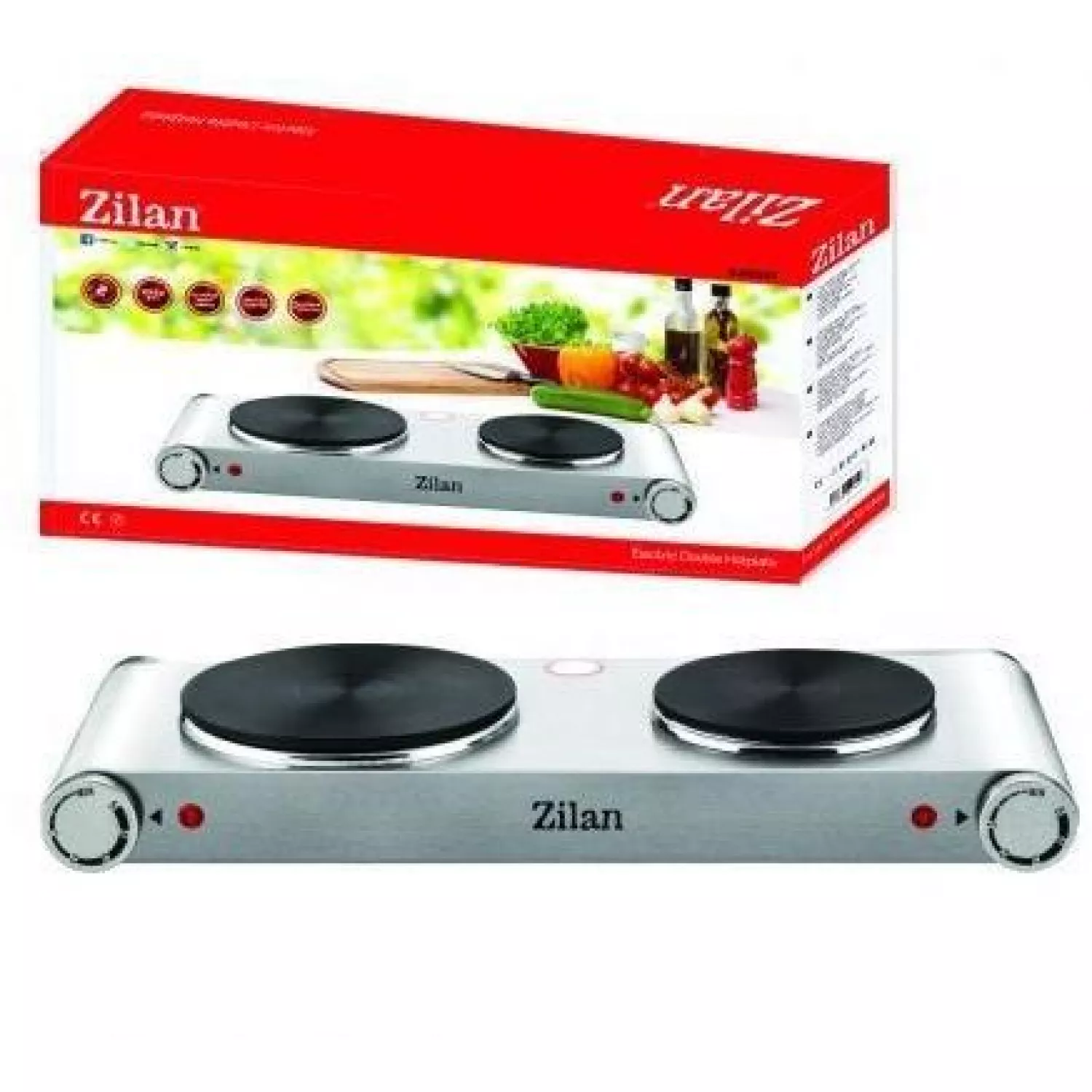 Plita electrica zilan zln0542 (pe masa), 2 arzatoare, inox, control mecanic