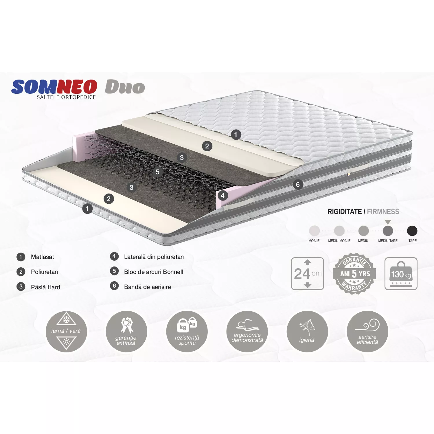 Caracteristici pentru Saltea Somneo DUO, 180x200x24