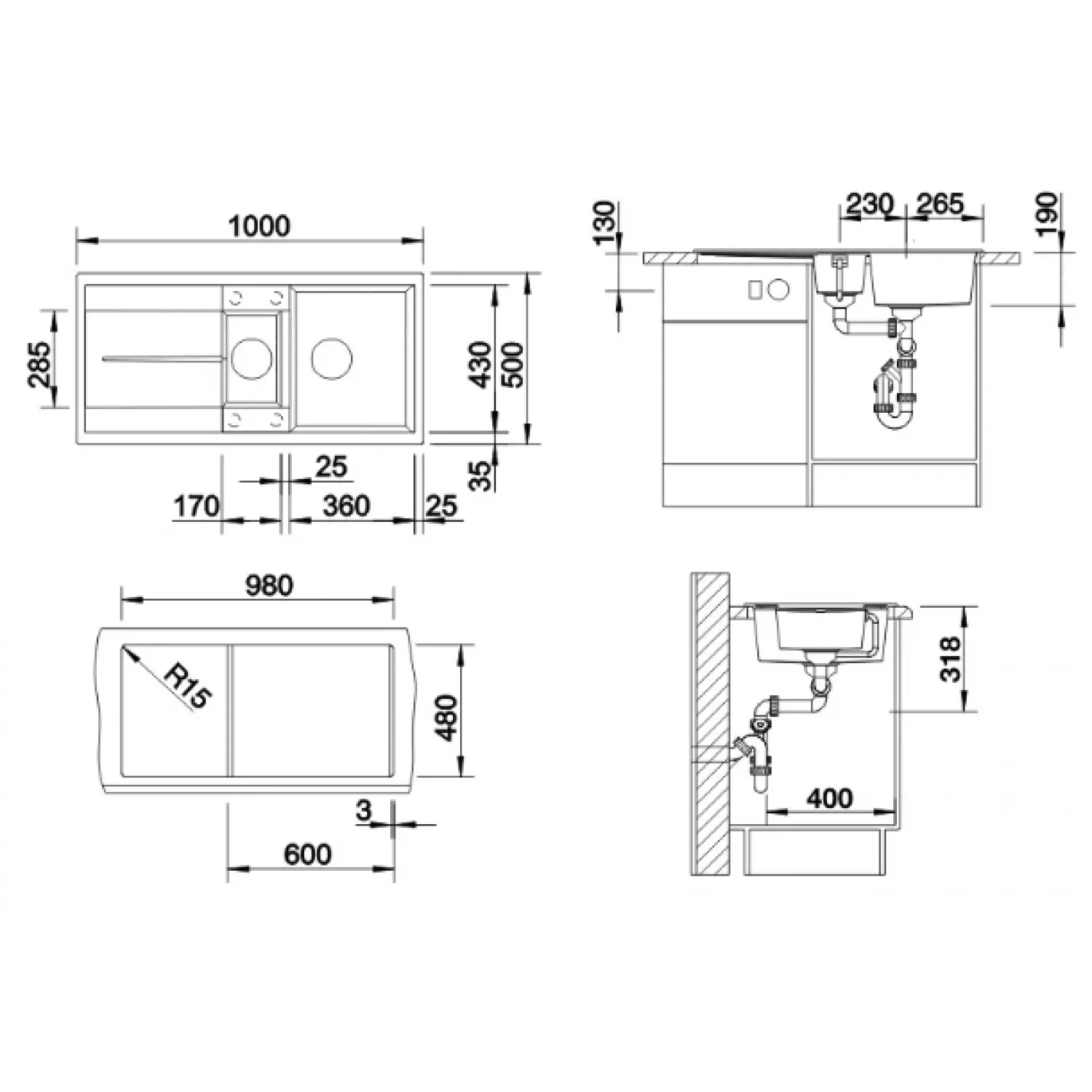 Caracteristici pentru Chiuveta Blanco 513053 Metra 6 S, Incastrabila, Granit, Antracit