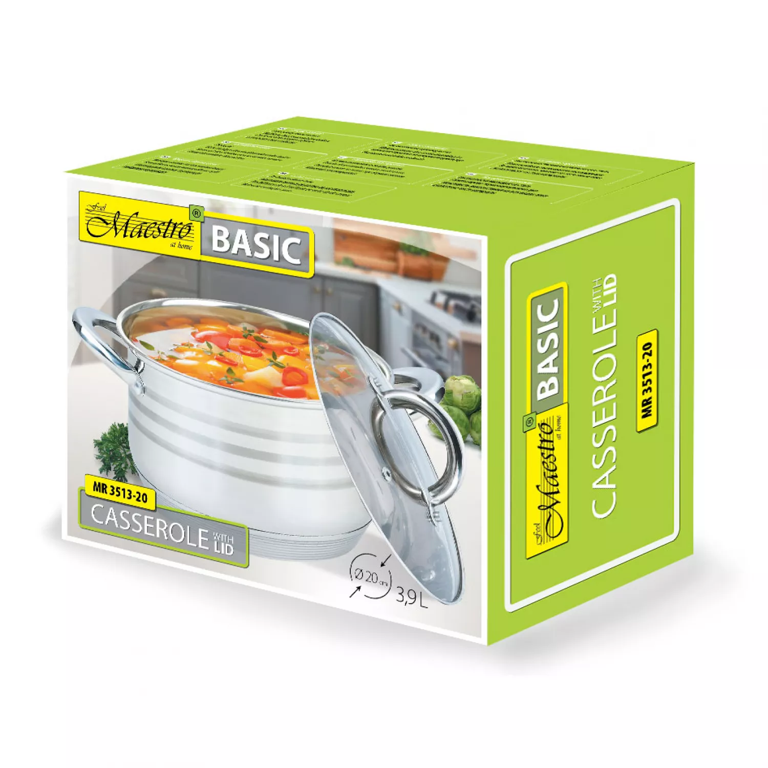 # 236166 Cratita cu capac Maestro MR-3513- 20, 3.9 l,  20 сm,  Inox,  Inox