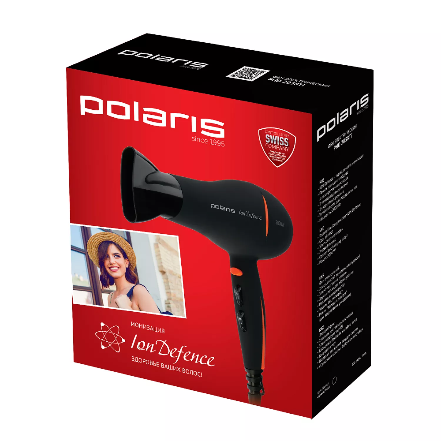 Uscator de par polaris phd2038ti, 2000 w, 2 viteze, 3 moduri, functie ionica, negru