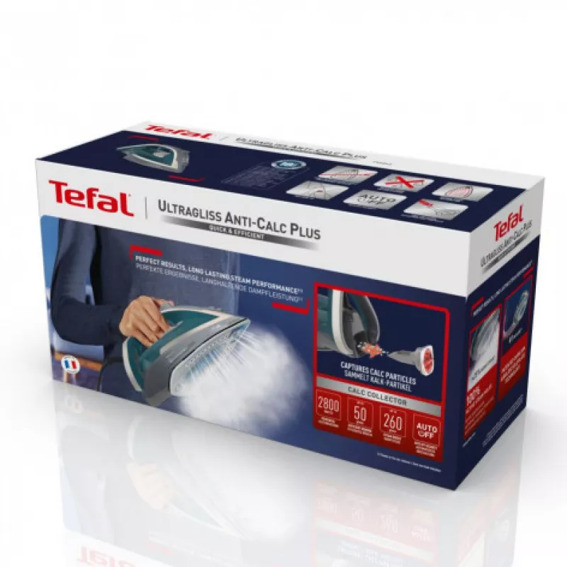 Fier de calcat tefal fv6842e0, durilium airglide, 2800 w, 260 g, min, albastru, inox