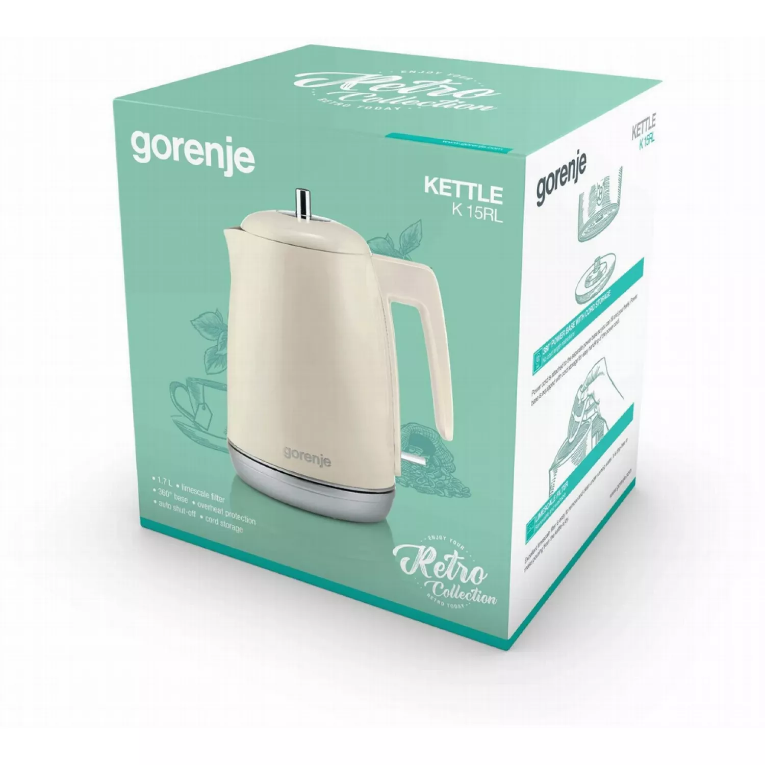 Caracteristici pentru Ceainic electric GORENJE K15RL, 1.7 l, 2200 W, Metal, plastic, Bej
