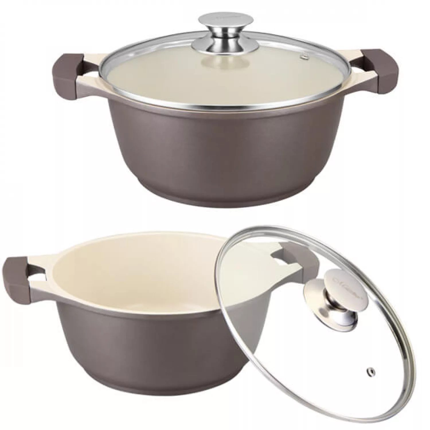 Cratita cu capac maestro mr-4228, 5.8 l, 28 cm, aluminiu, bej
