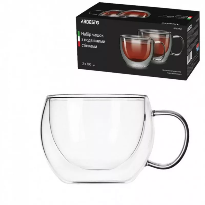 Caracteristici pentru Set cani Ardesto AR2630GH, cu pereti dubli, 300 ml, H 7, 5 cm, 2 bucati, sticla borosilicata