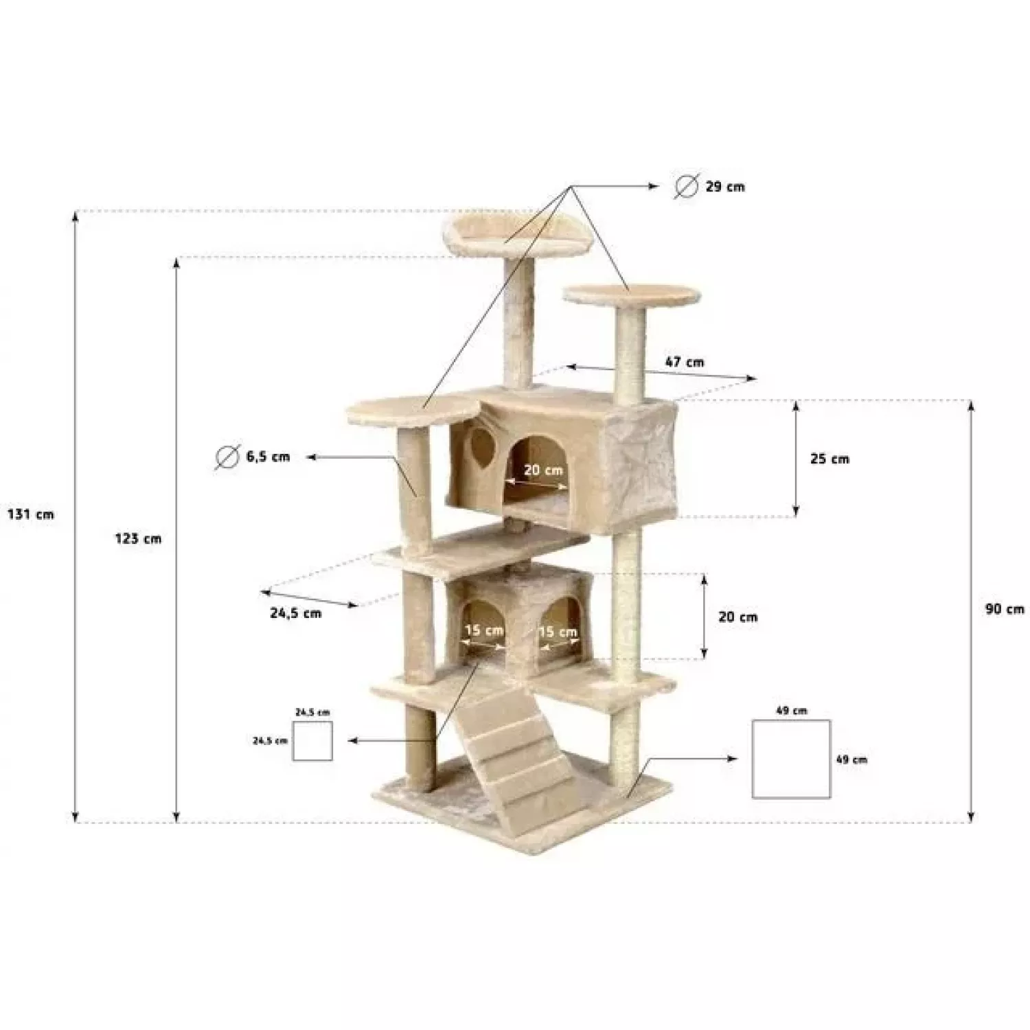 Caracteristici pentru Ansamblu de joaca pentru pisici FunFit 1609, Bej, 131 x 49 x 49 cm