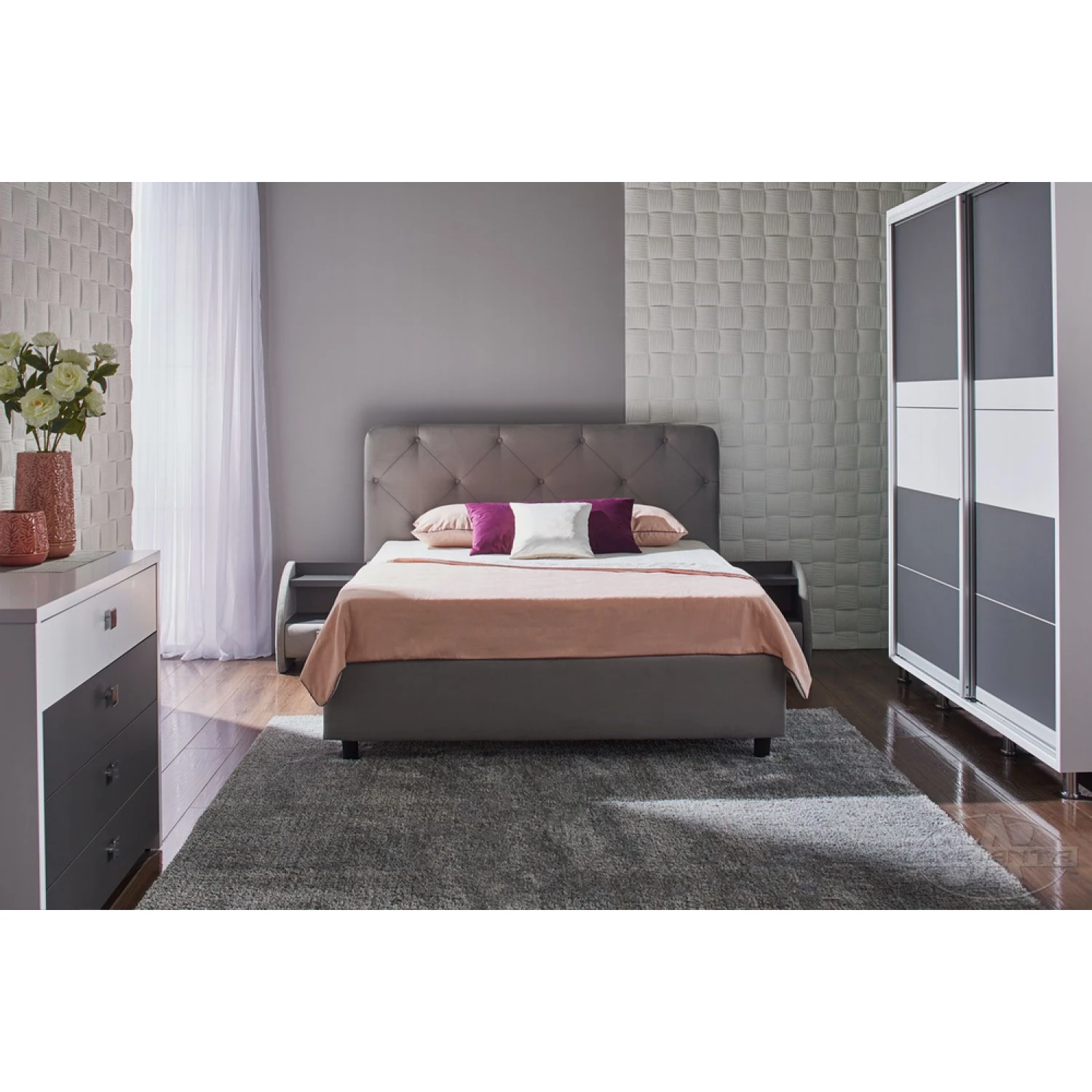 Pat ambianta pat 1, 4 cristal gri, pat dublu, gri, 140 x 200
