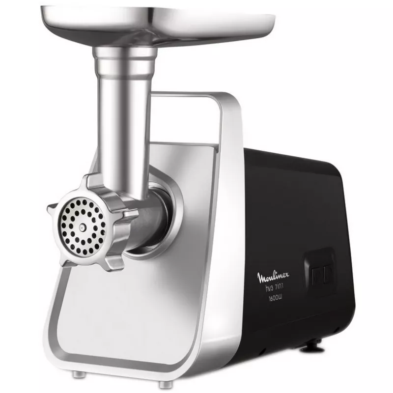Caracteristici pentru Masina de tocat carne MOULINEX ME3078, 1600 W, 1.9 kg, min, Revers, Accesorii pentru carnaciori, kebbe, razatoare, tomate, Negru, Inox