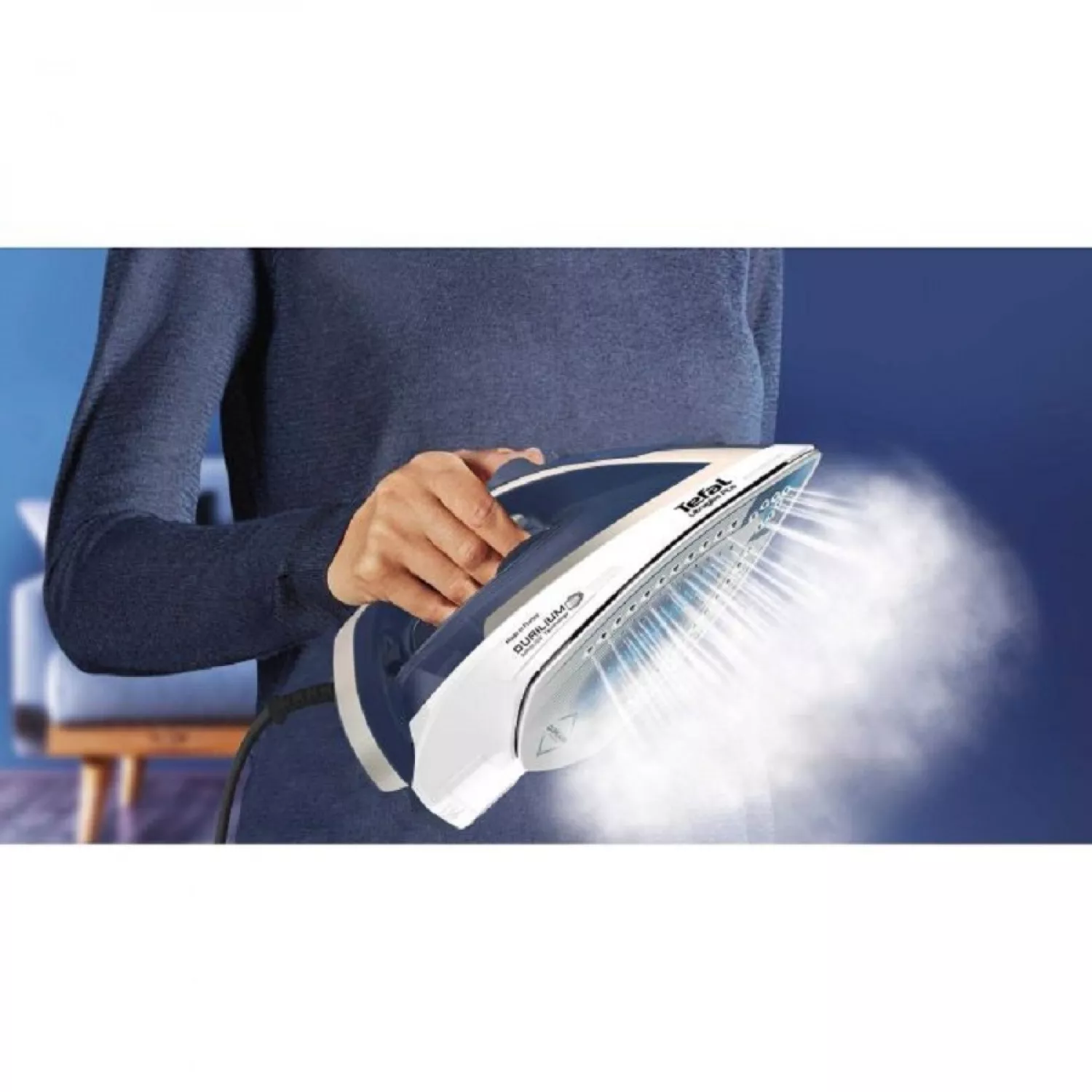 Fier de calcat tefal fv6812e0, talpa durilium airglide, 2800 w, jet de aburi 260 g, min, 270 ml, albastru, alb
