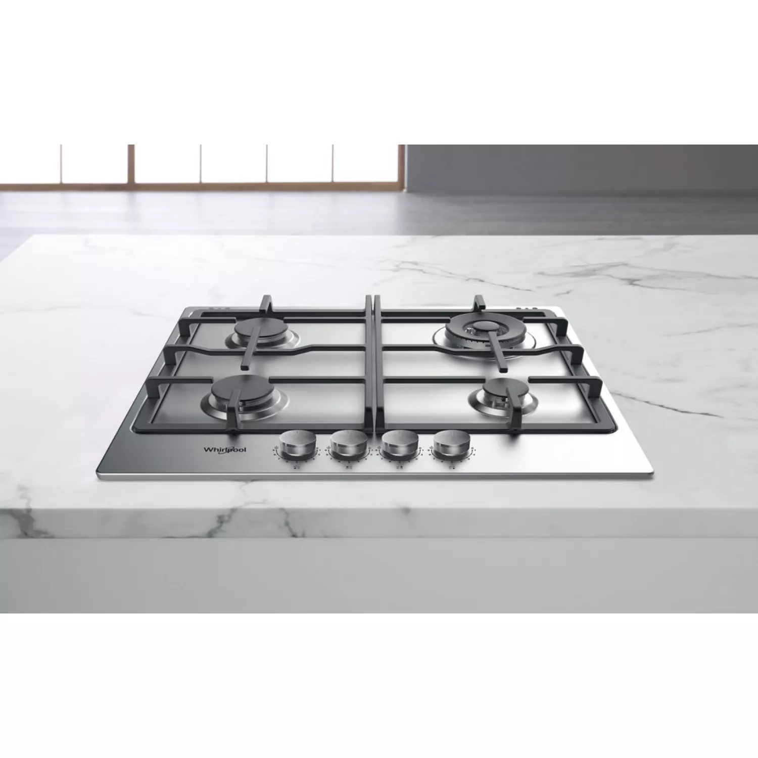 Plita incorporabila cu gaz whirlpool tgml 661 ix, 4 arzatoare, arzator wok, inox, aprindere electrica
