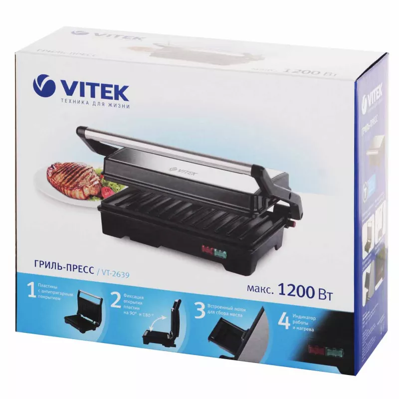 Caracteristici pentru Gratar electric VITEK VT-2639, 1200 W, Termostat, Argintiu, Negru