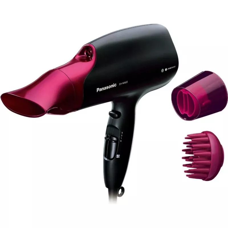 Uscator de par panasonic eh-na65-k865, 2000 w, 3 trepte de viteza, 4 regimuri de temperatura, functie ionica, negru, roz