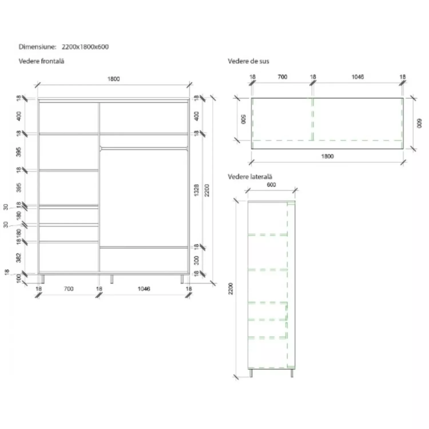 Caracteristici pentru Dulap cu usi glisante MOBILDOR ARON K1 1800/600/2200, Alb briliant