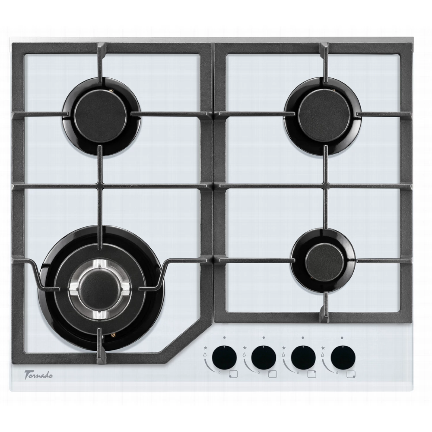 Caracteristici pentru Plita incorporabila cu gaz TORNADO TR4033 SBF HM WH, 4 arzatoare, Arzator Wok, Sticla calita, Aprindere electrica, Alb
