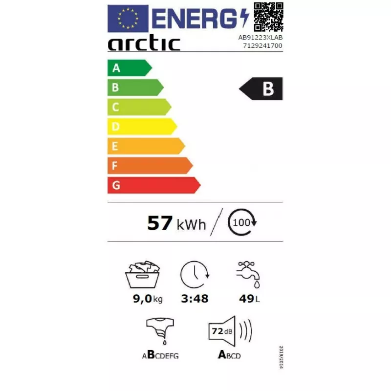 Caracteristici pentru Masina de spalat rufe ARCTIC AB91223XLAB, Standard, 9 kg, 1200 RPM, 15 programe, Antracit, B