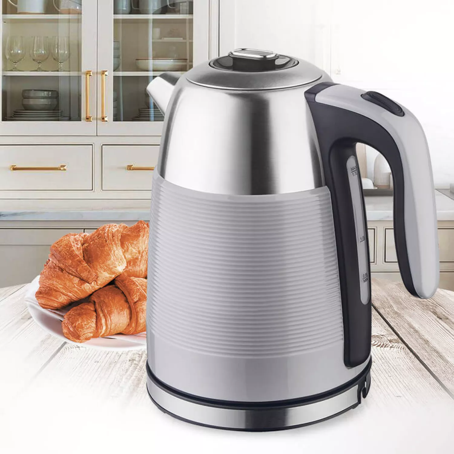 Ceainic electric maestro mr -051, 1.7 l, 2200 w, inox, plastic, filtru, baza rotativa, indicator nivel apa, inox, gri