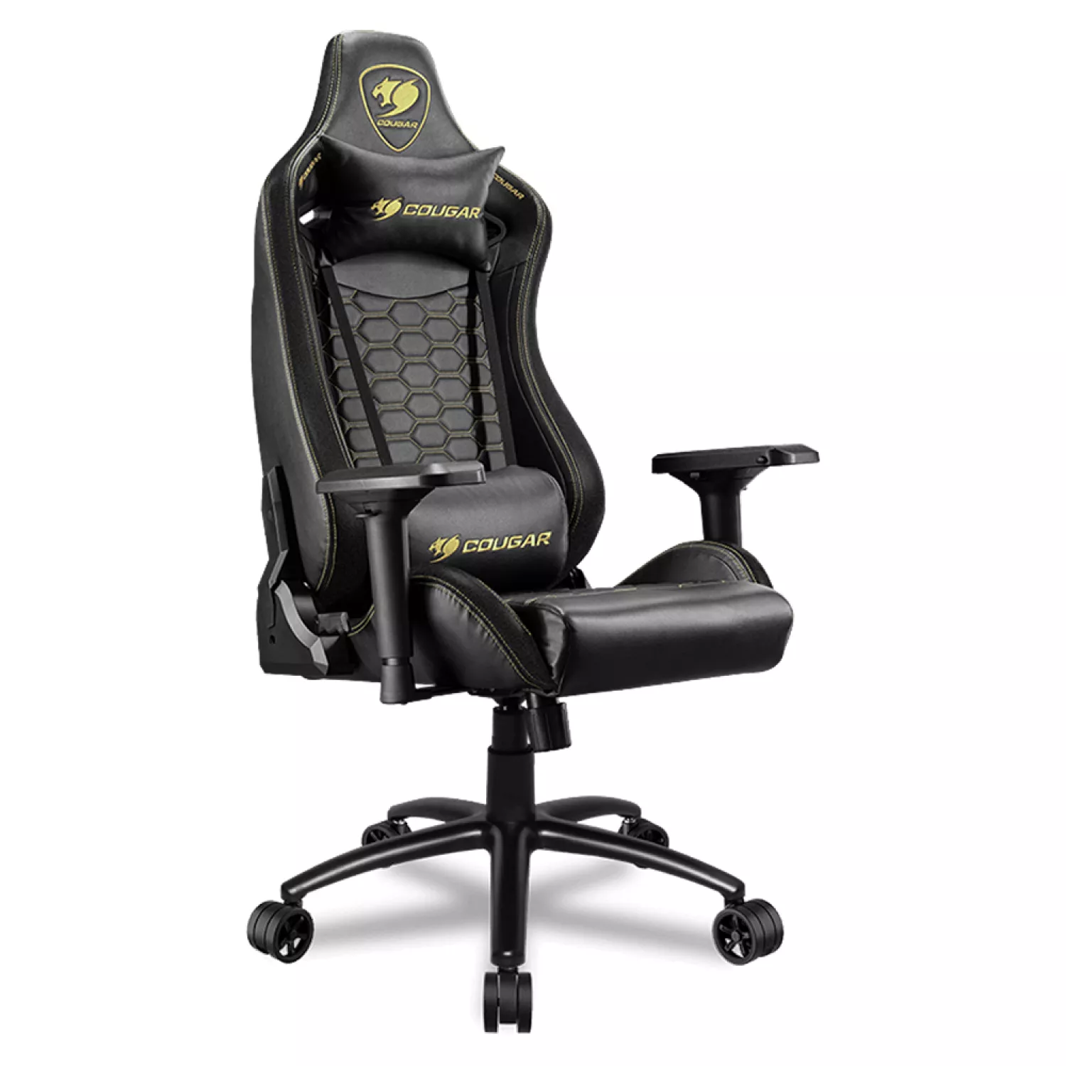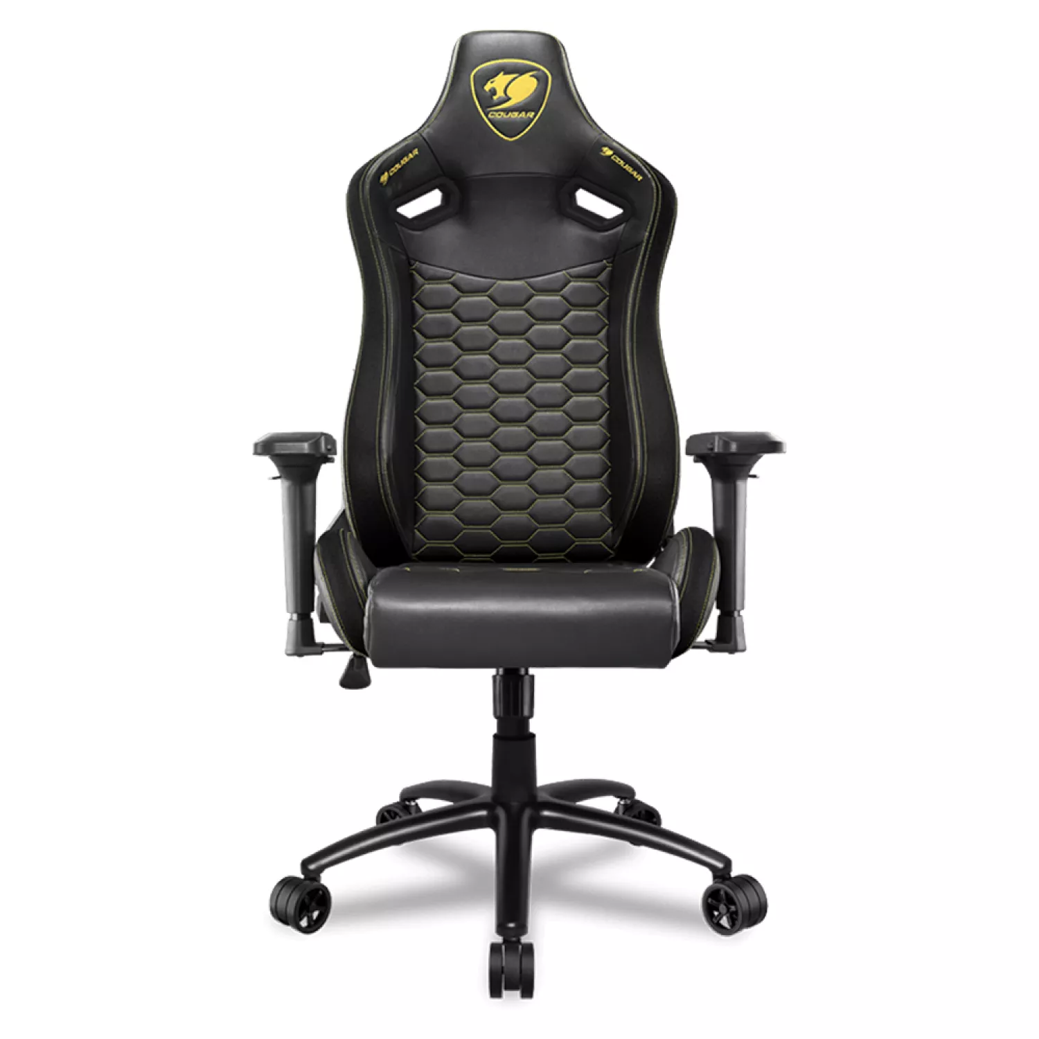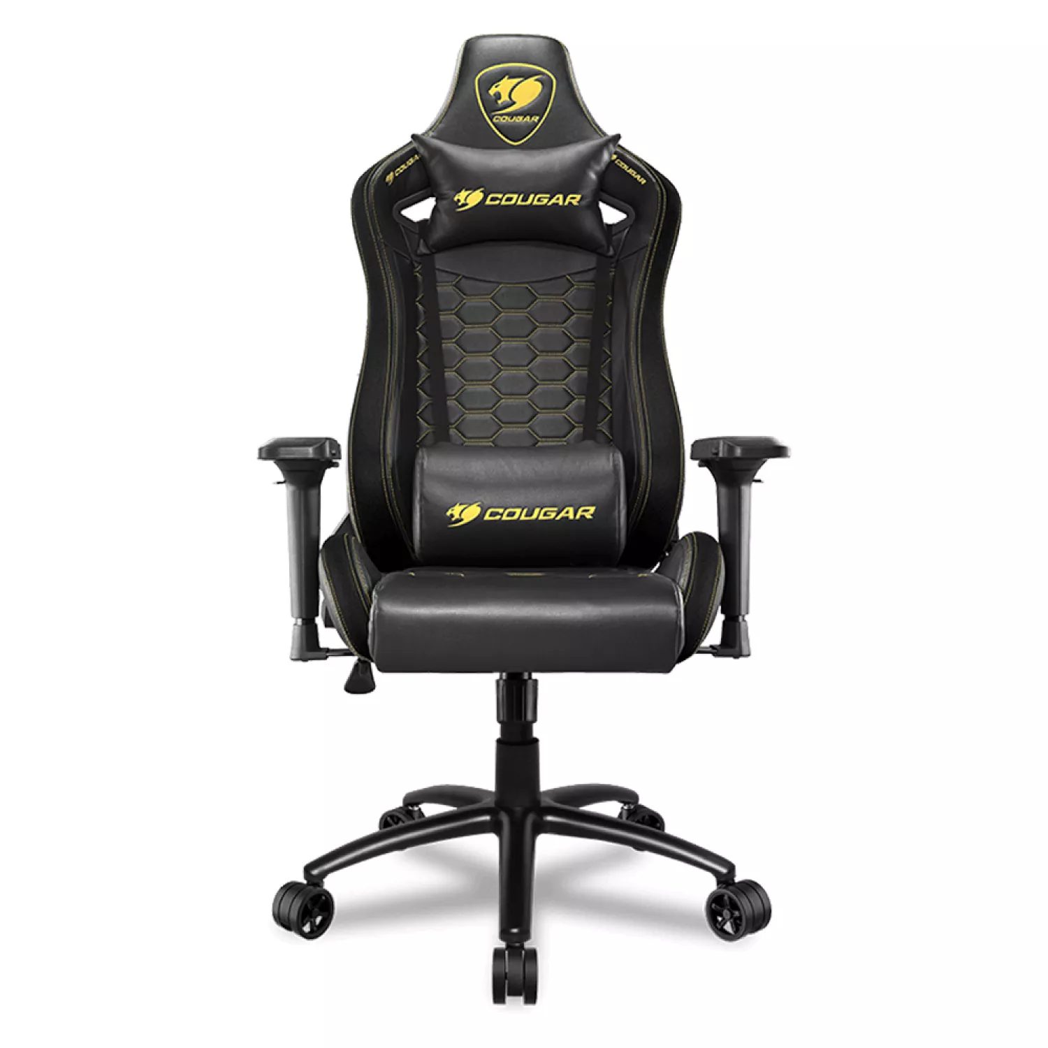 Fotoliu gaming cougar outrider s royal, otel, piele eco, gazlift, 120 kg, 134-142 cm, negru,galben