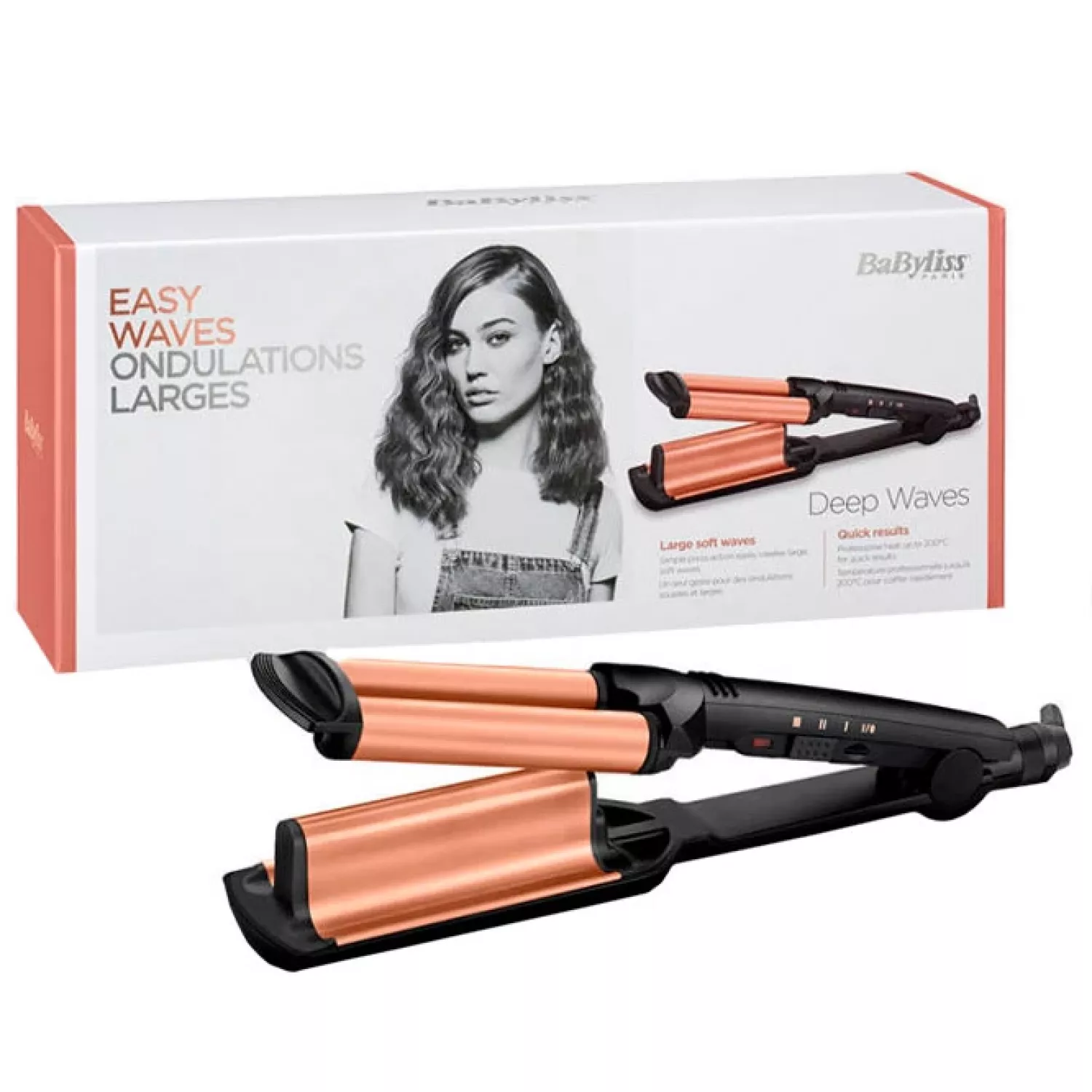 Caracteristici pentru Multistyle BABYLISS W2447E, 85 W, 3 setari, 200 °C, 32 mm, Acoperire ceramica, Negru, Auriu