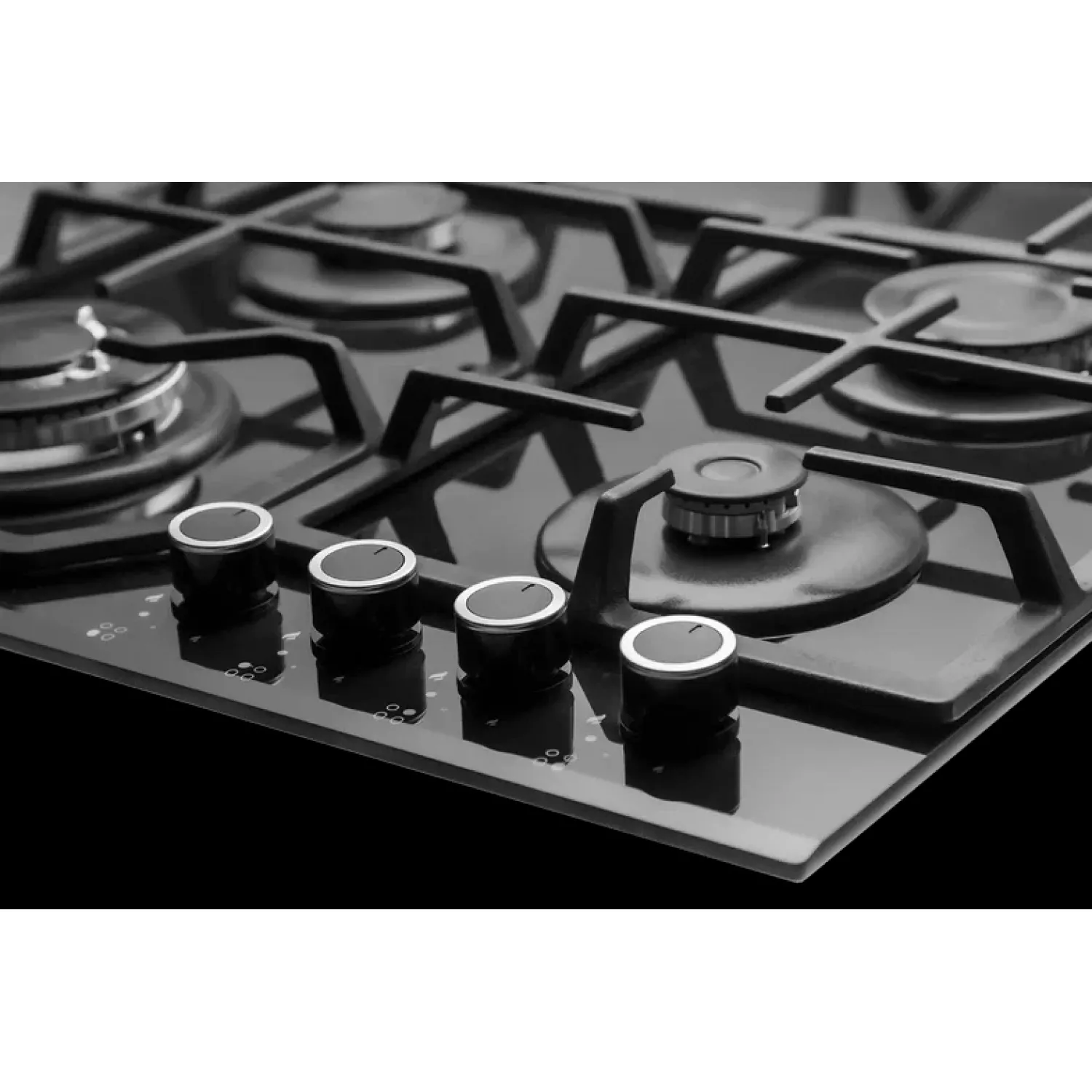 Plita incorporabila cu gaz mastercook mc-e 4215 g bl glass, 4 arzatoare, arzator turbo, sticla calita, aprindere electirca, negru
