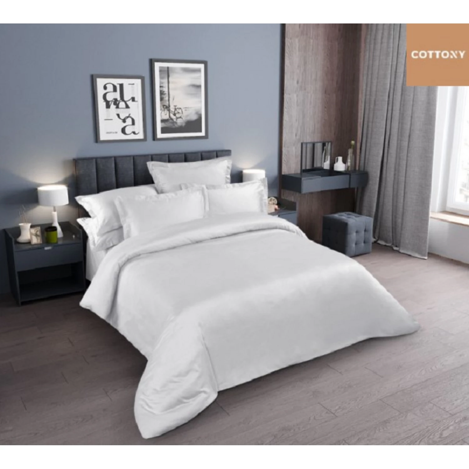 Lenjerie de pat cottony slpsl perla alba uniton (240), 1 persoana, satin de lux, alb
