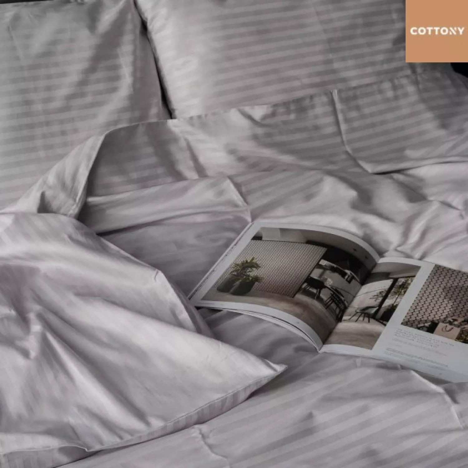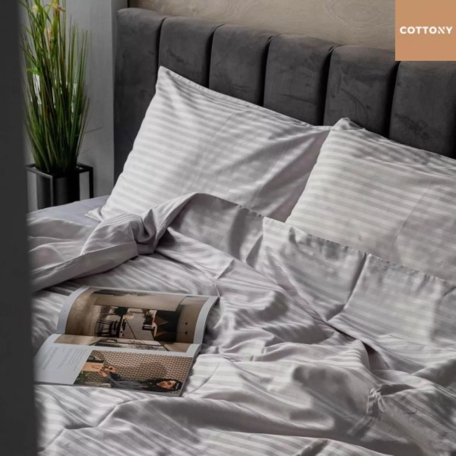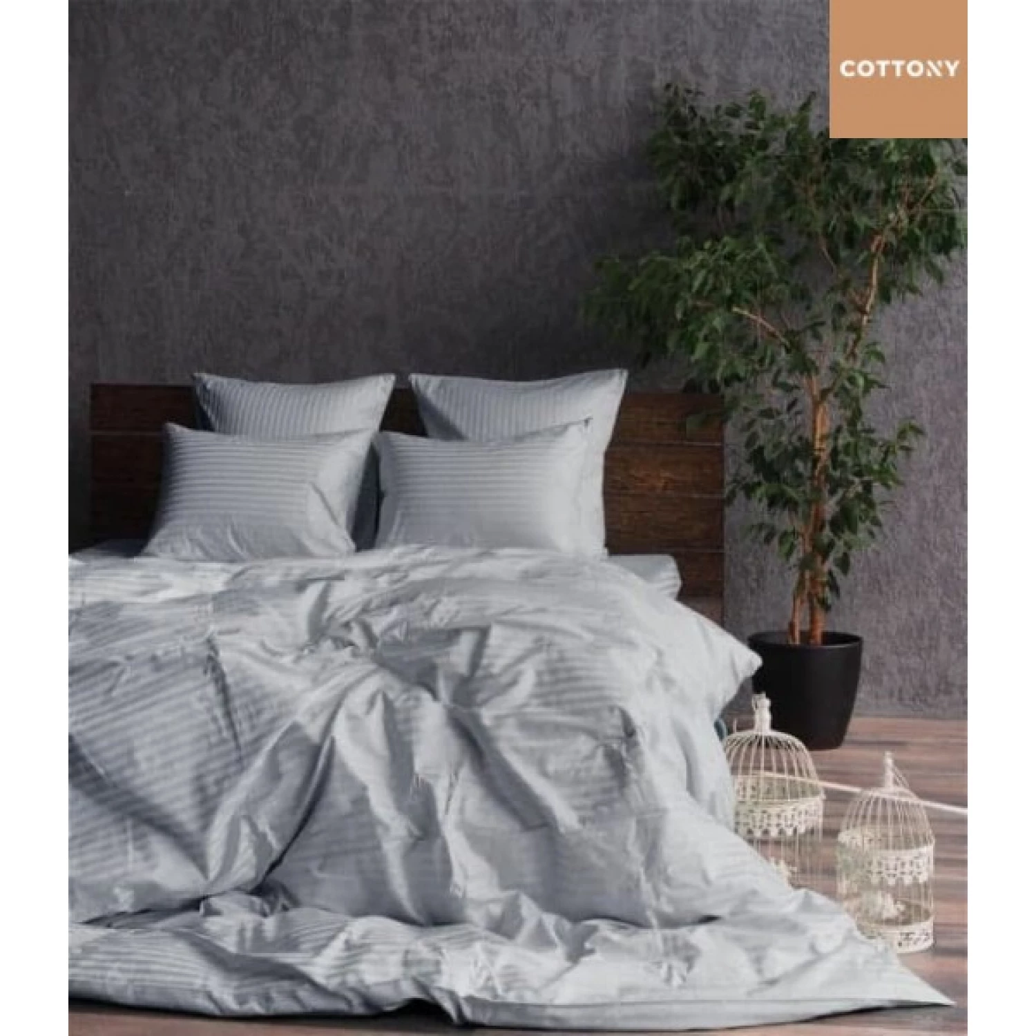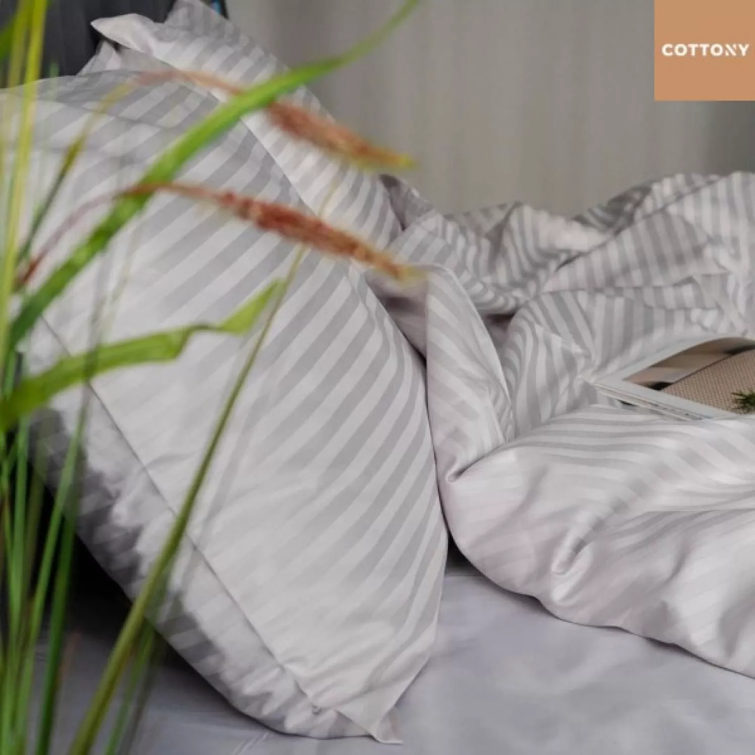 Lenjerie de pat cottony slpsl stripe satin light gray n9, 1 persoana, satin de lux, gri