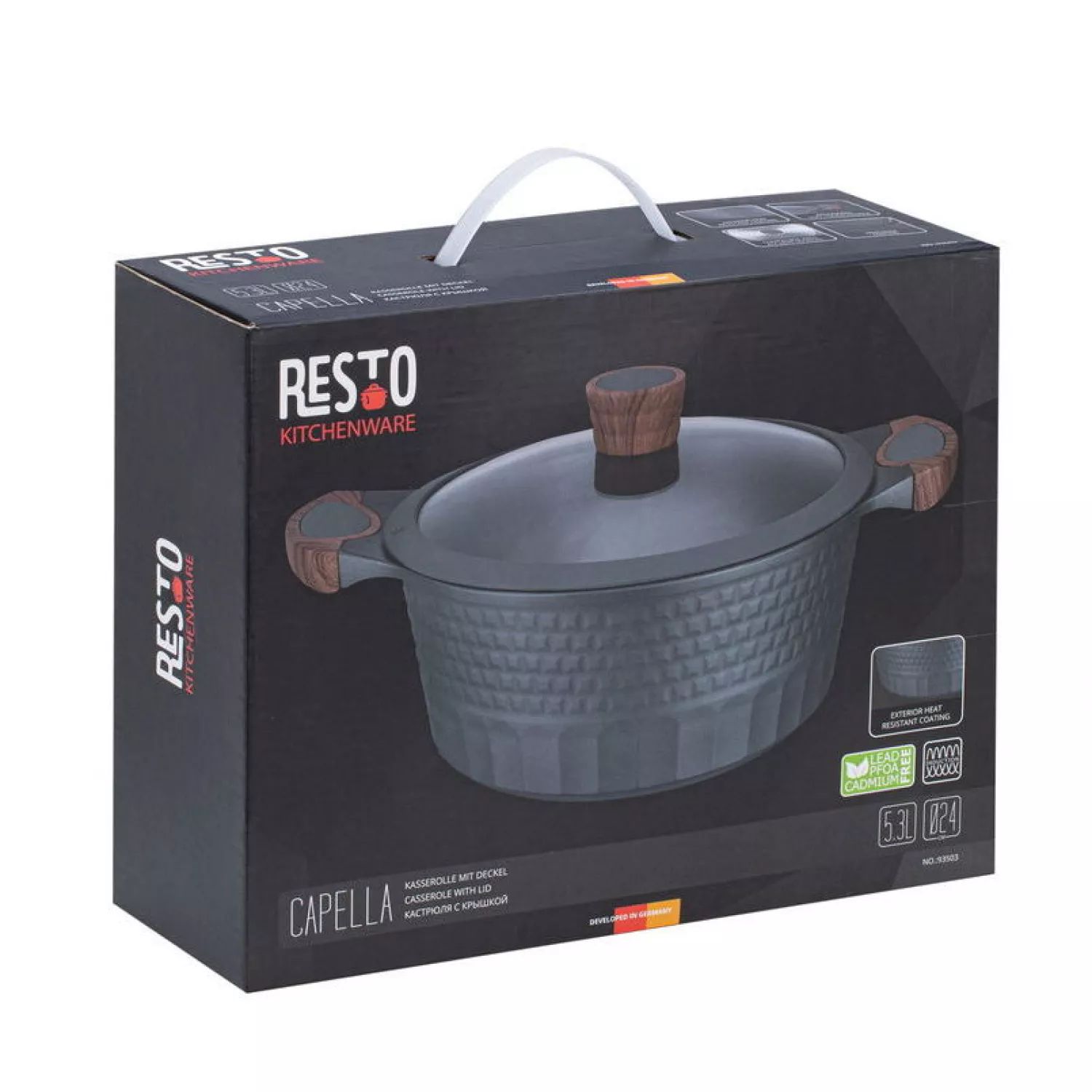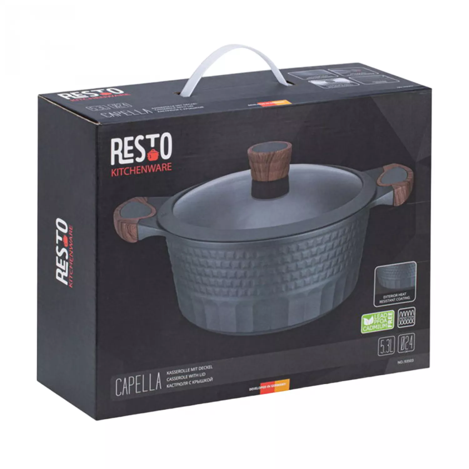 Caracteristici pentru Cratita cu capac RESTO 93503, 5.3 l, 24 сm, Inox