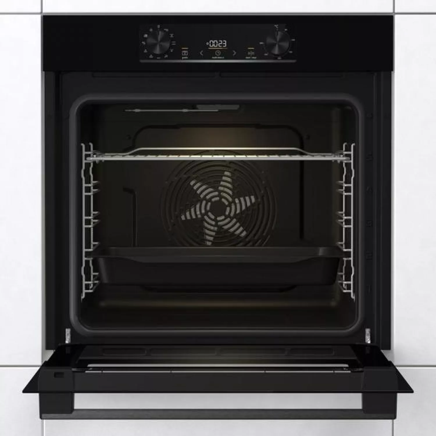 Cuptor electric incorporabil gorenje bo 6735 e02bk, 77 l, display, grill, timer, convectie, curatare cu abur, negru, a
