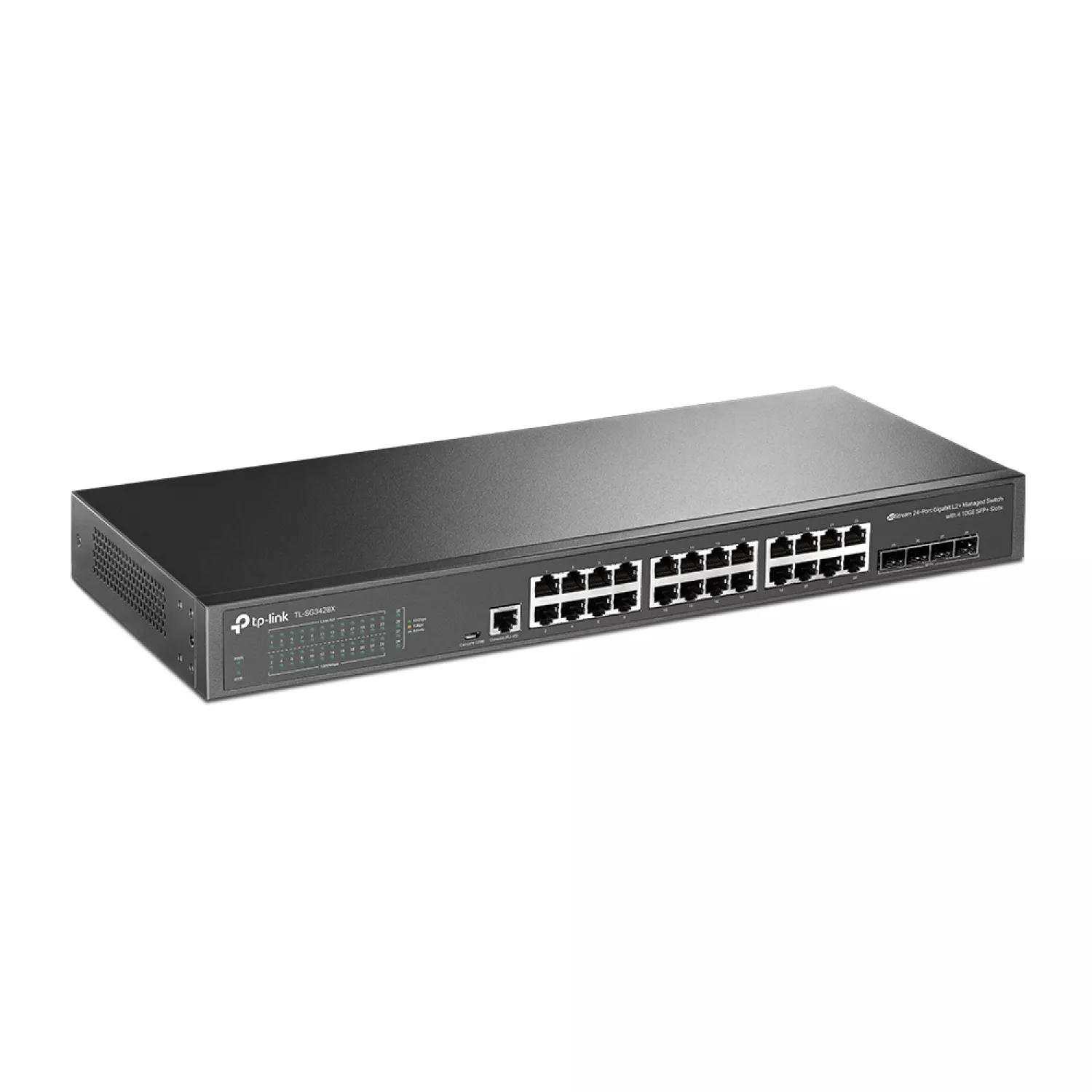 TL-SG3428X 24-Port Gigabit L2+ Managed Switch, 24-Port Gigabit L2+ Managed Switch with 4 10GE SFP+ Slots, 10G Lightning-Fast Uplink, STP/RSTP/MSTP, IGMP V1/V2/V3 Snooping, 802.1P Qos, Rate Limiting, Port Trunking, Port Mirroring, SNMP, RMON