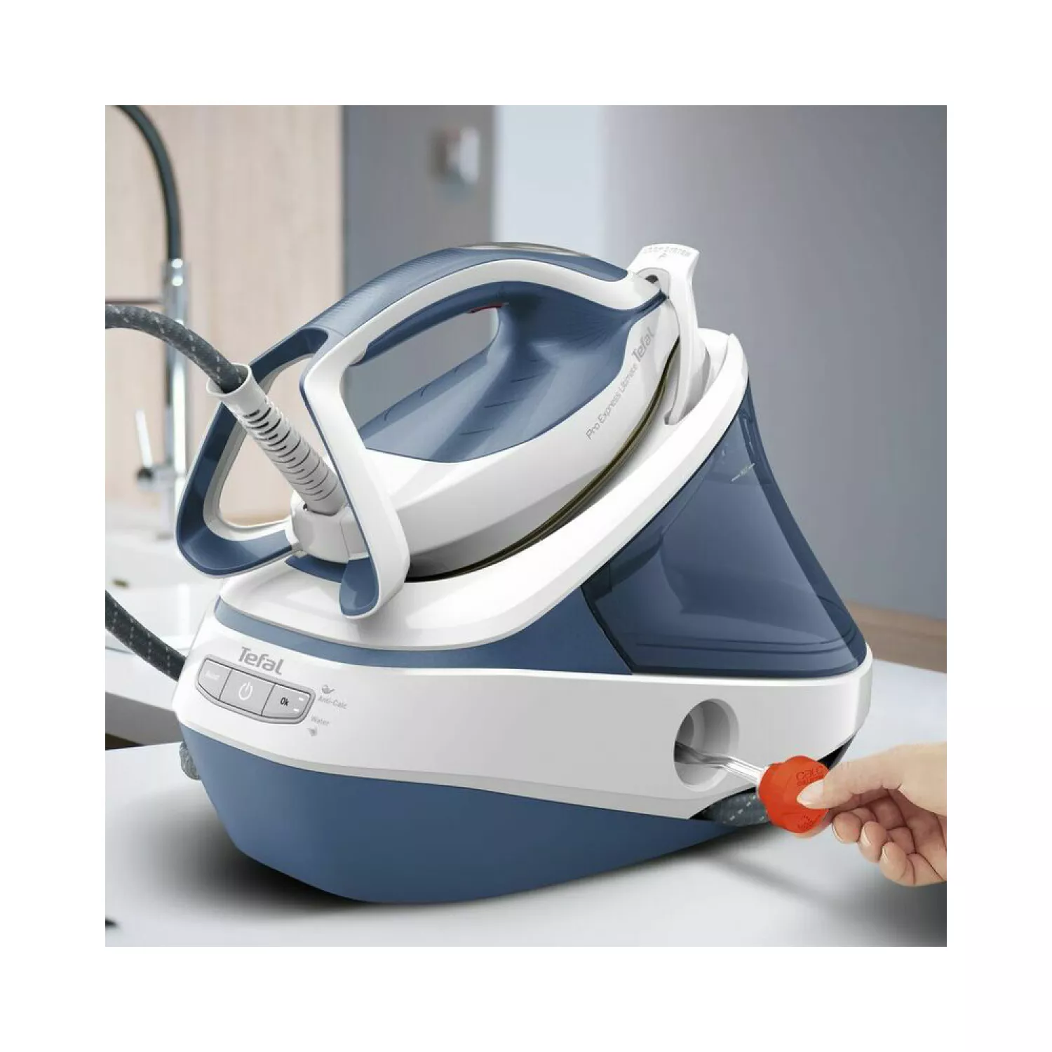 Statie de calcat cu abur tefal gv9710e0, 3000 w, 1.2 l, 580 g/min, dulirium airglide autoclean, albastru deschis