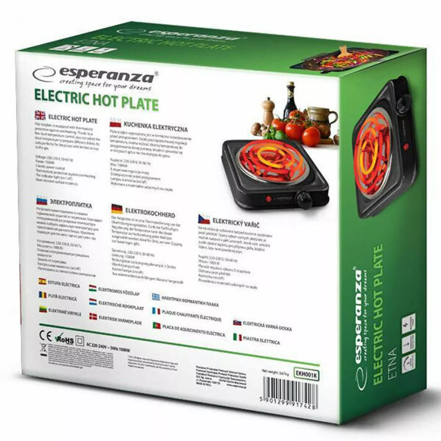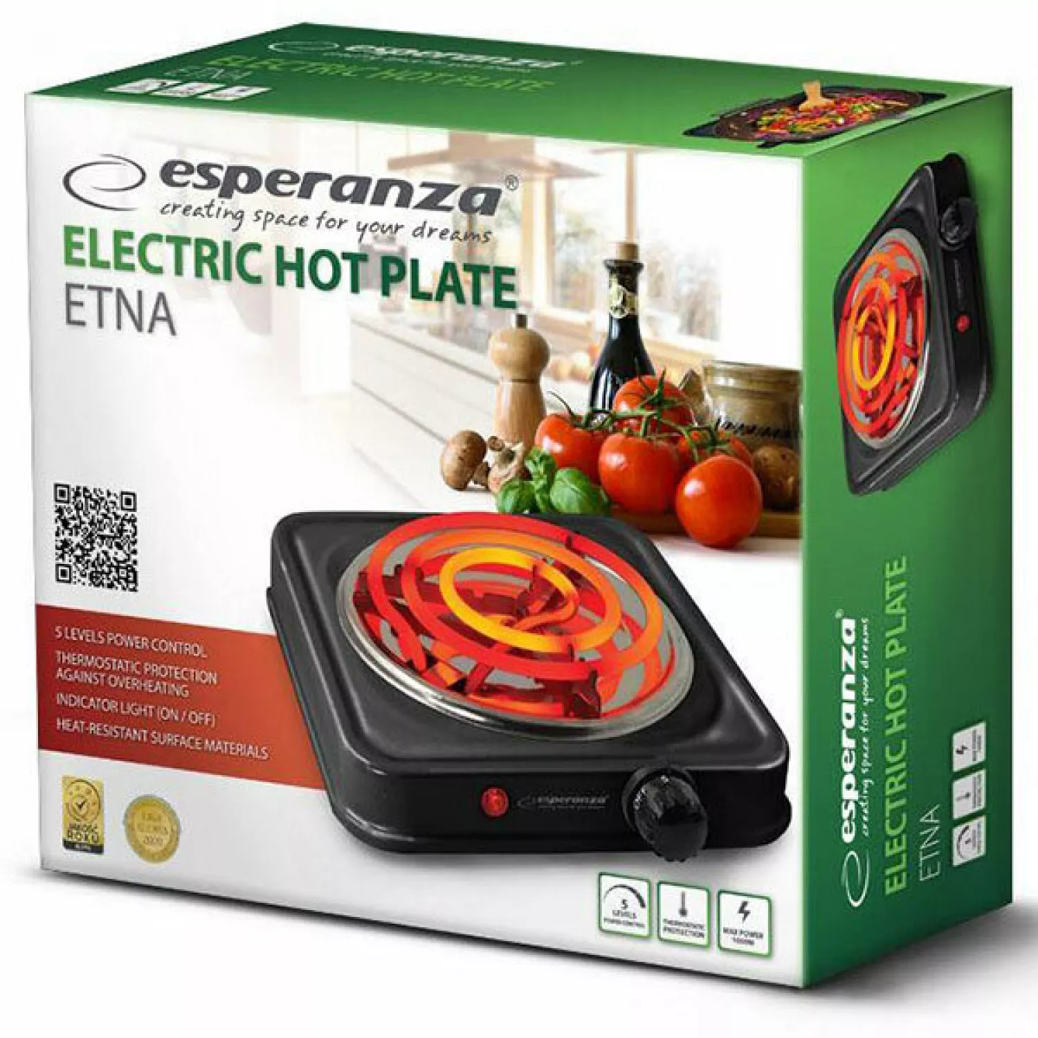 Aragaz electric esperanza etna ekh012k (ekh001k), 5 moduri, email, negru