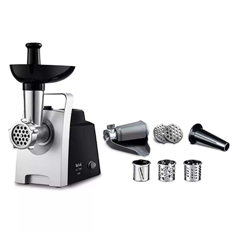 Masina de tocat carne tefal ne109838putere: 1400 wmaterialul carcasei: plastic capacitatea de mărunșire : 1,7 kg/mfuncție reversaccesoriu pentru cârnațistorcător pentru fructe și legume, 1400 w, 1.7 kg/min, functie revers, negru, inox