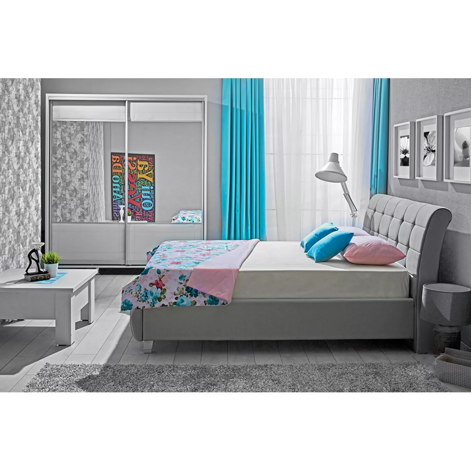 Pat ambianta samba 1.4 m, pal melaminat, stofa plusata, gri, 140 x 200
