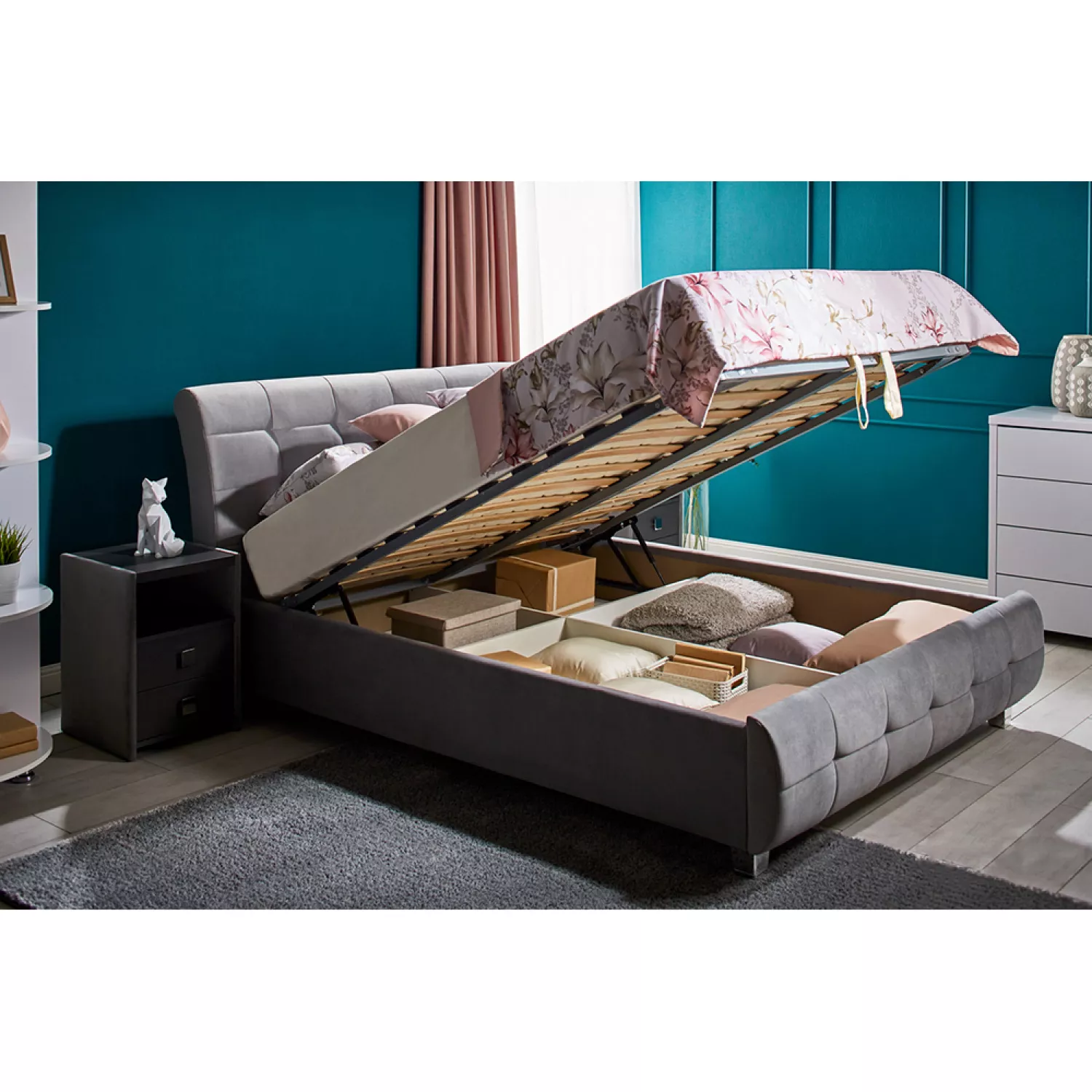 Pat ambianta samba 1.6 m, pal melaminat, stofa plusata, gri, 160 x 200