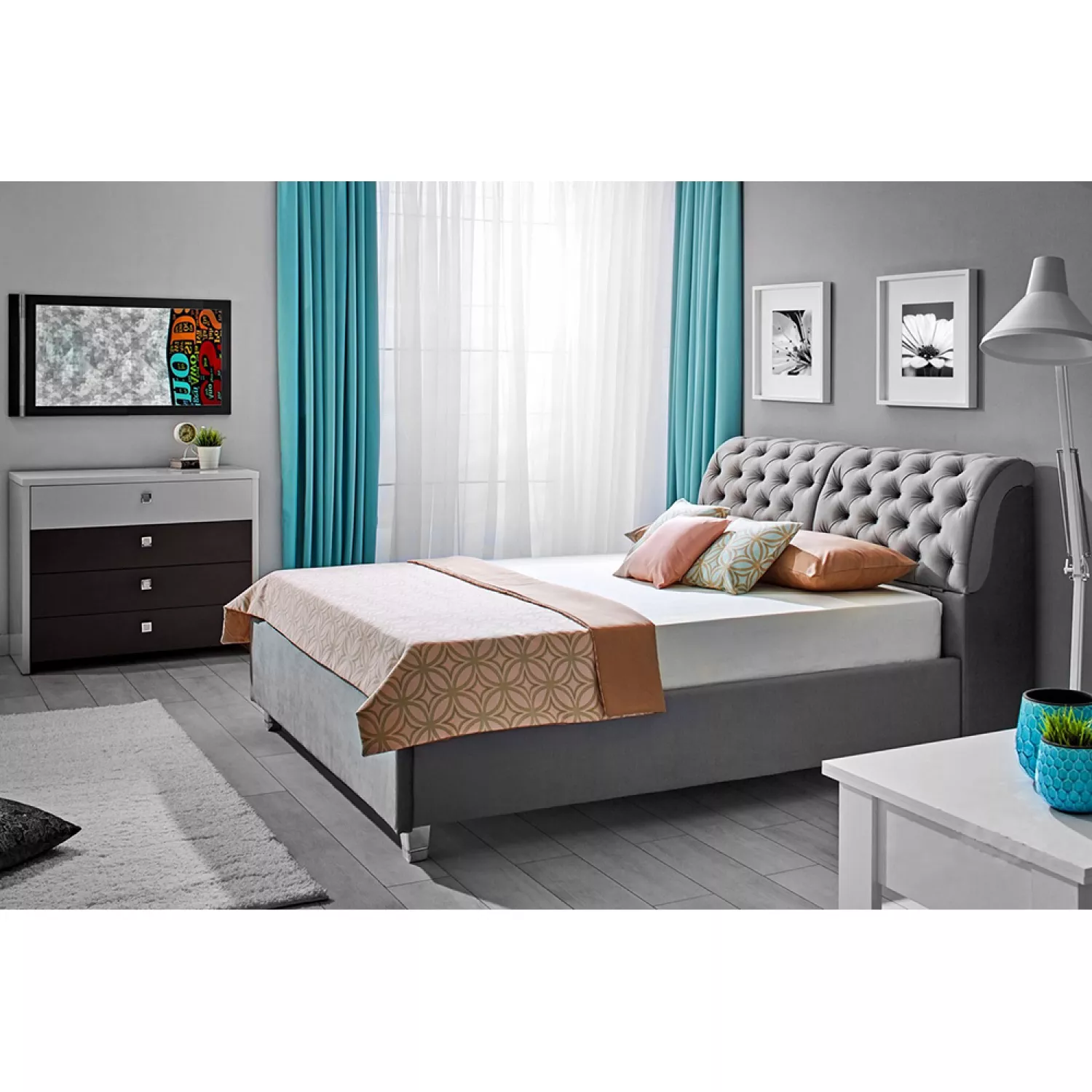 Pat ambianta frankfurt 1.8 m, pal melaminat, stofa plusata, gri, 180 x 200