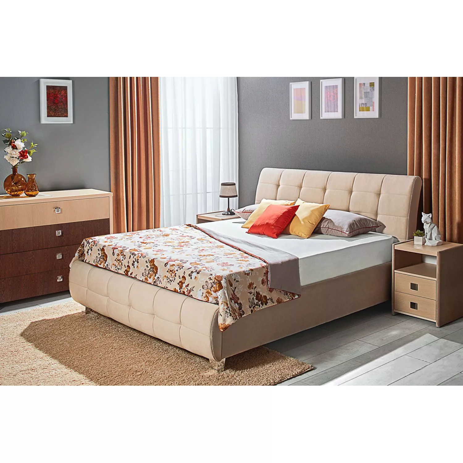 Pat ambianta samba 1.8 m, pal melaminat, stofa plusata, bej, 180 x 200
