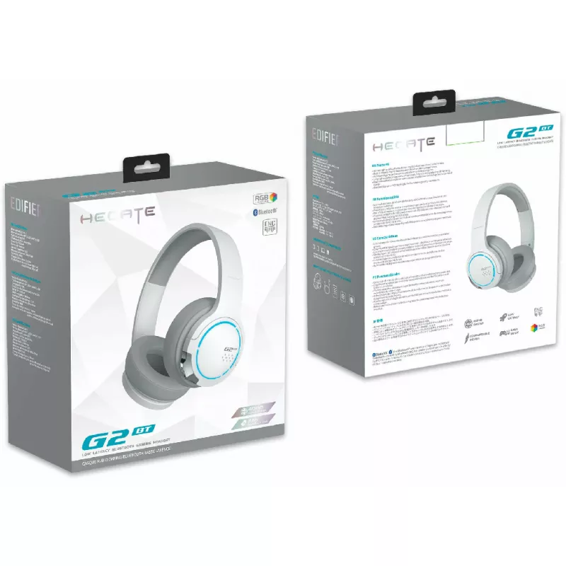 Caracteristici pentru Casti cu fir si microfon EDIFIER G2BT WHITE / BLUETOOTH GAMING ON-EAR HEADPHONES WITH MICROPHONE, RGB, 3.5MM / BLUETOOTH V5.2, PLAYBACK TIME 20 HOURS (LIGHT ON); 36 HOURS (LIGHT OFF)