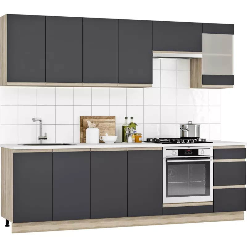 Element bucatarie MP JETTA SUS NR 7 GRAPHITE/OAK SONOMA 80/36, Grafit, Stejar Sonoma